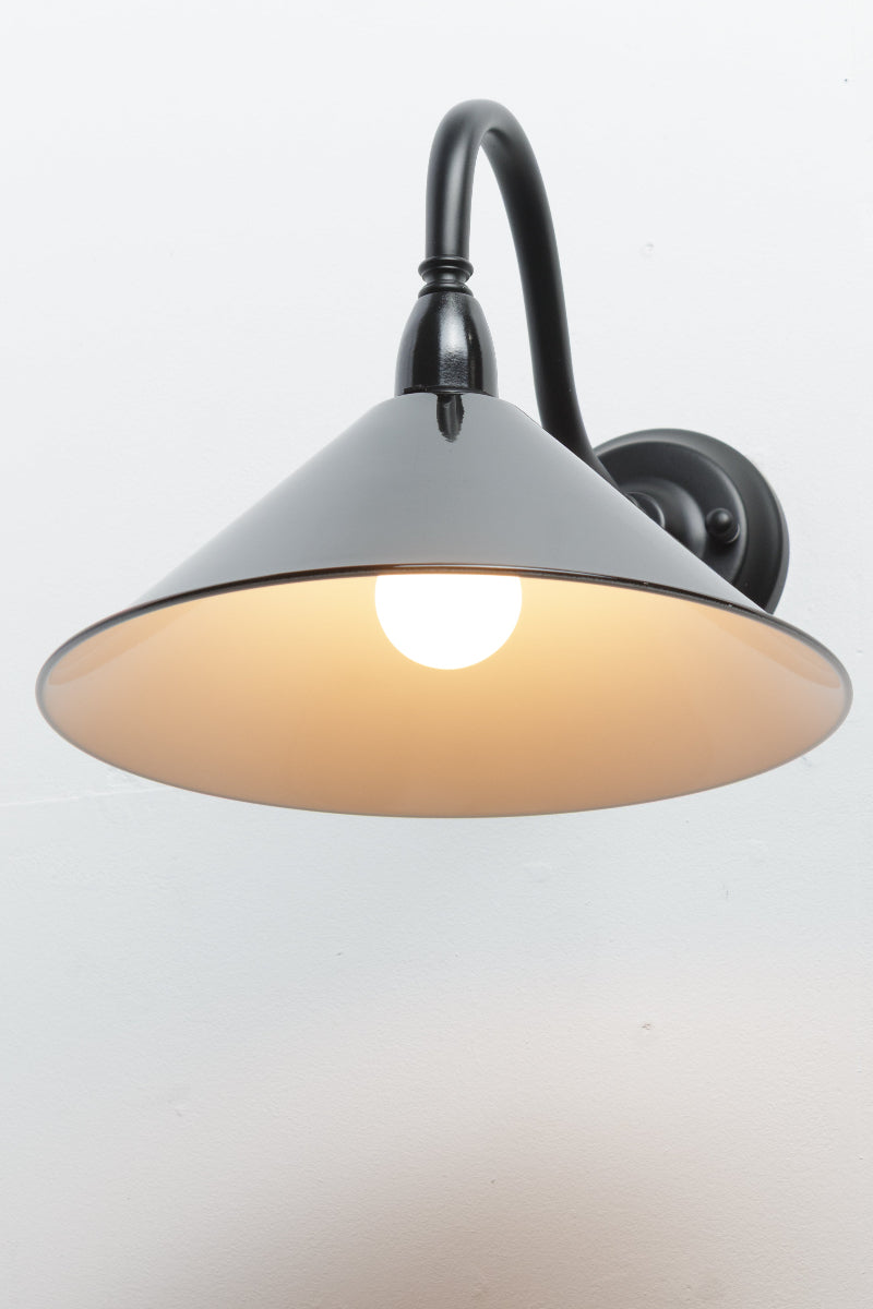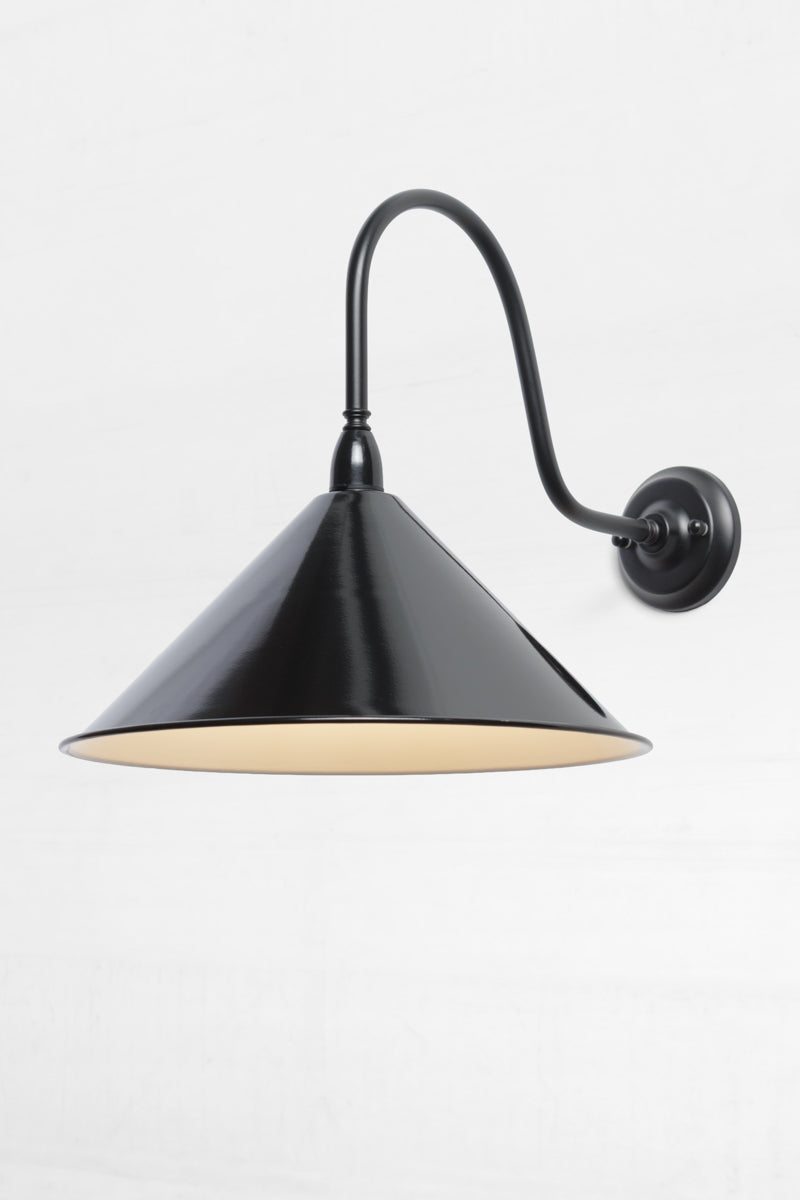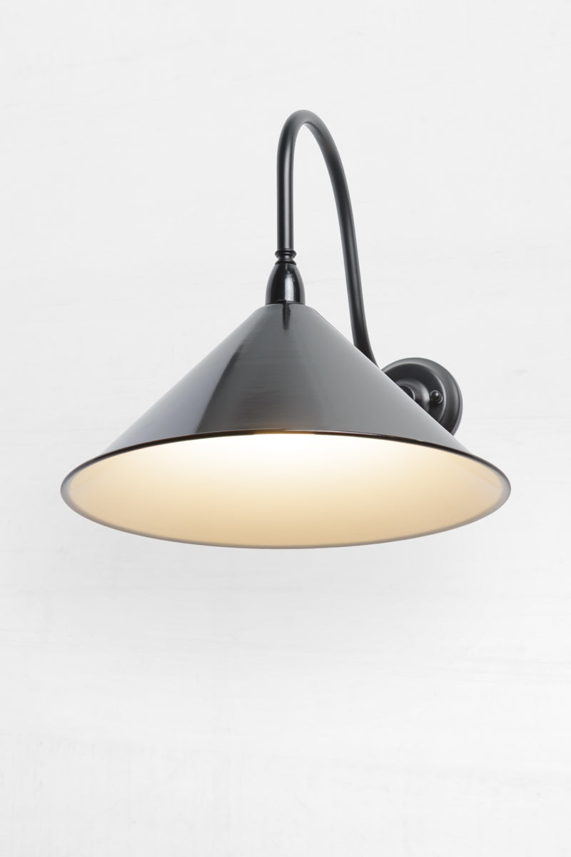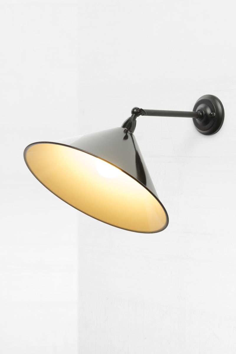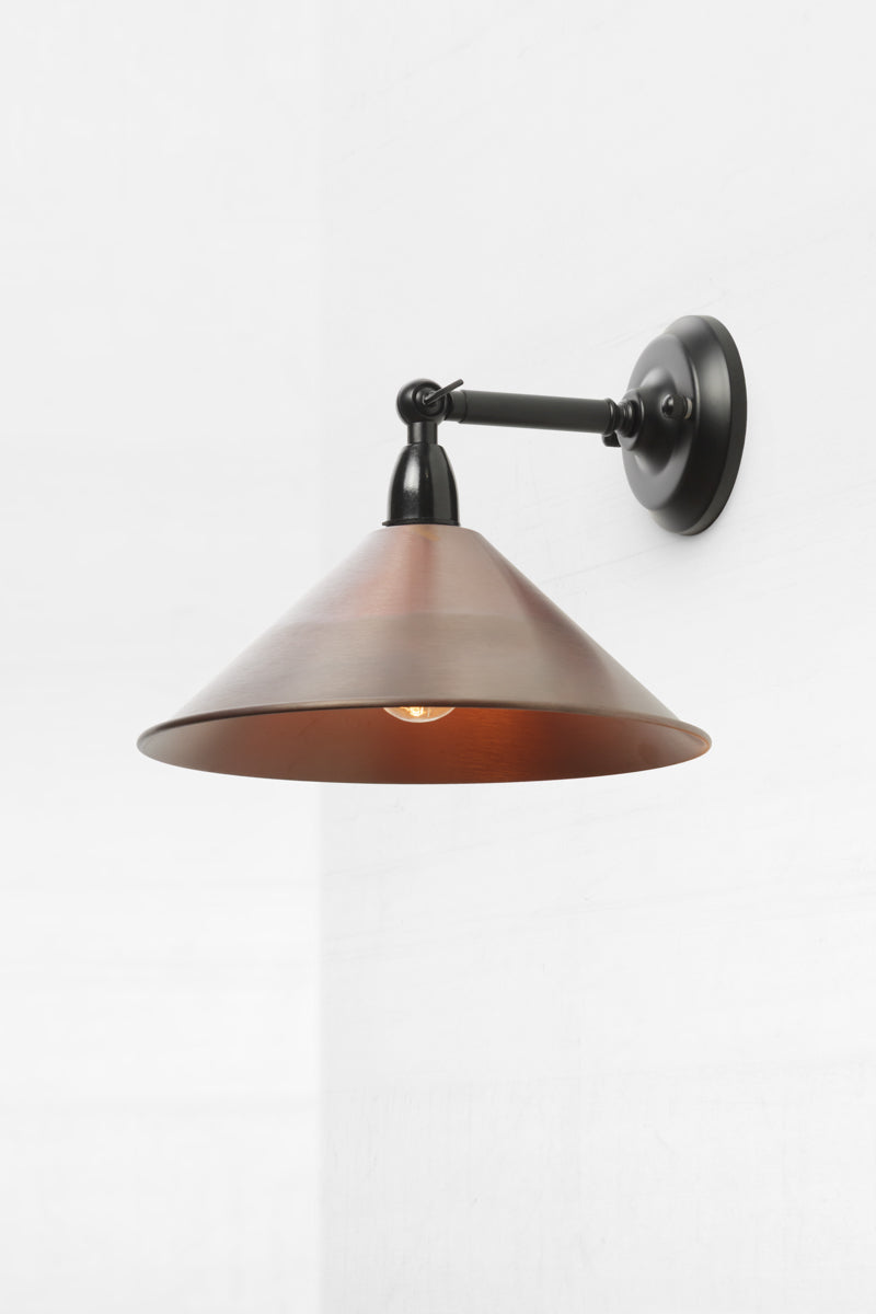 Full of vintage charm, the Cone Exterior Wall Light is a versatile addition to both traditional and modern spaces. With two steel wall sconce designs to choose from, each available in two sizes, its cone shaped shade in brass, copper or steel adds character and warmth. Available in eight finishes, it can be customised to suit any style, making it ideal for bathrooms, entryways or commercial applications.
