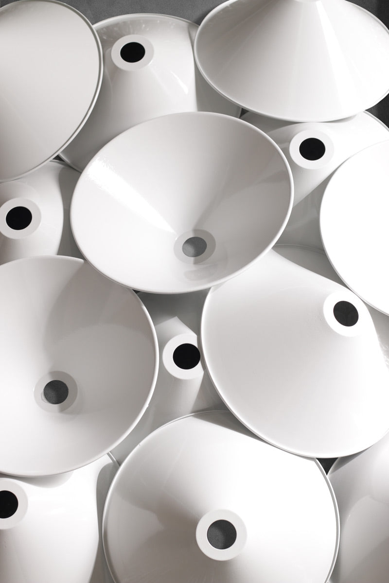 - The shades are available in eight finishes including the Federation Green and Black shades ubiquitous in warehouse lighting from the 1940's. Finishes include: Black, Federation Green, White, Aged Solid Brass, Bright Solid Brass, Aged Solid Copper, Bright Solid Copper and Vintage Steel.
