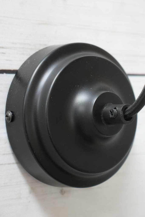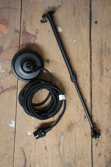 - Matt black metalware and cloth cord. Supplied with 3m of cord which can be shortened on installation to get your ideal drop.