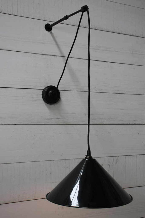 These Cone Pulley Wall Lights bring charm to even the most modern home or commercial setting. The shades are available in eight finishes and two different sizes. Made from brass, copper or steel, you can be assured of their quality. The black wall arm allows for adjustable projection meaning this wall light is suitable for many different spaces. Use to light up a table nook or a stairwell.