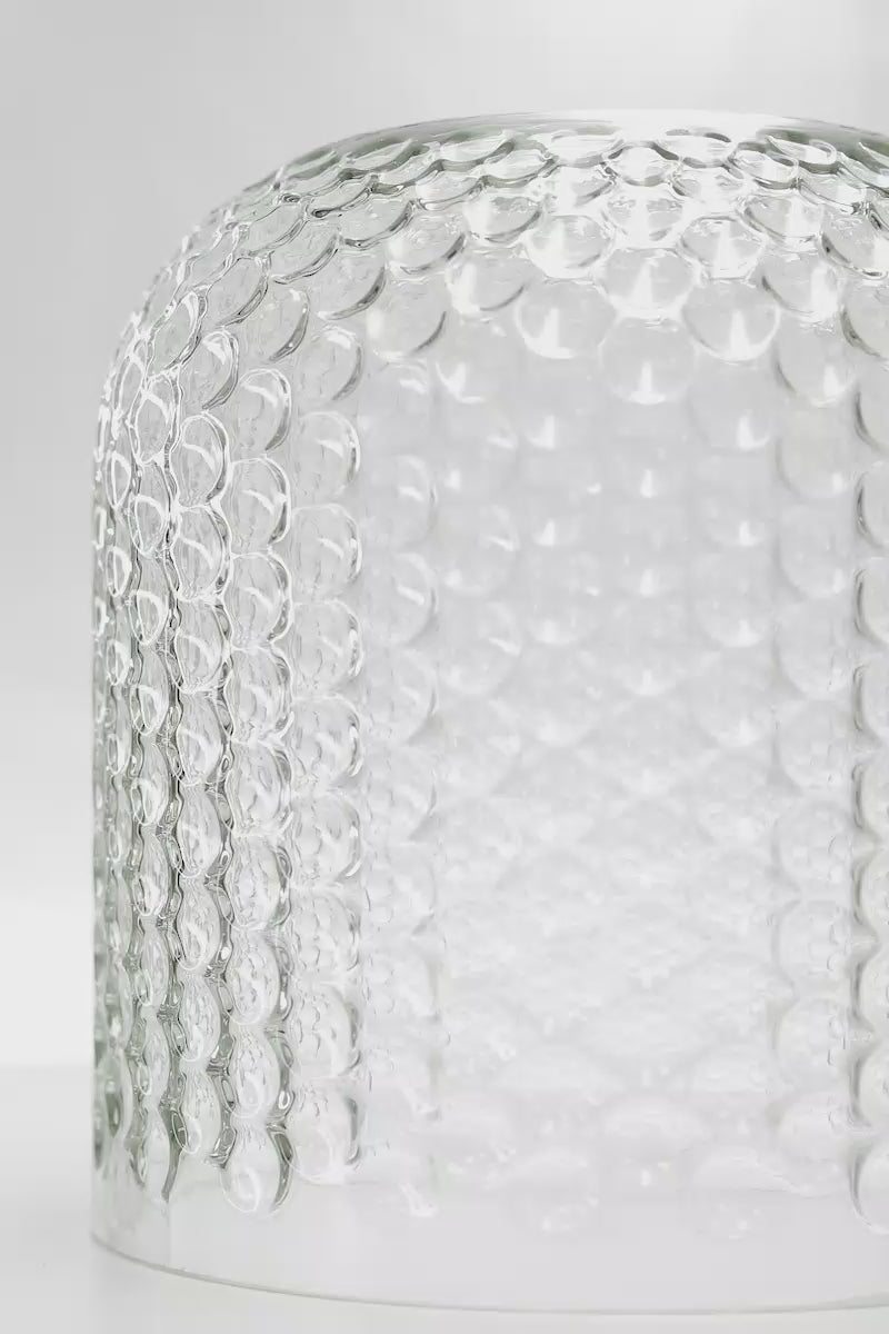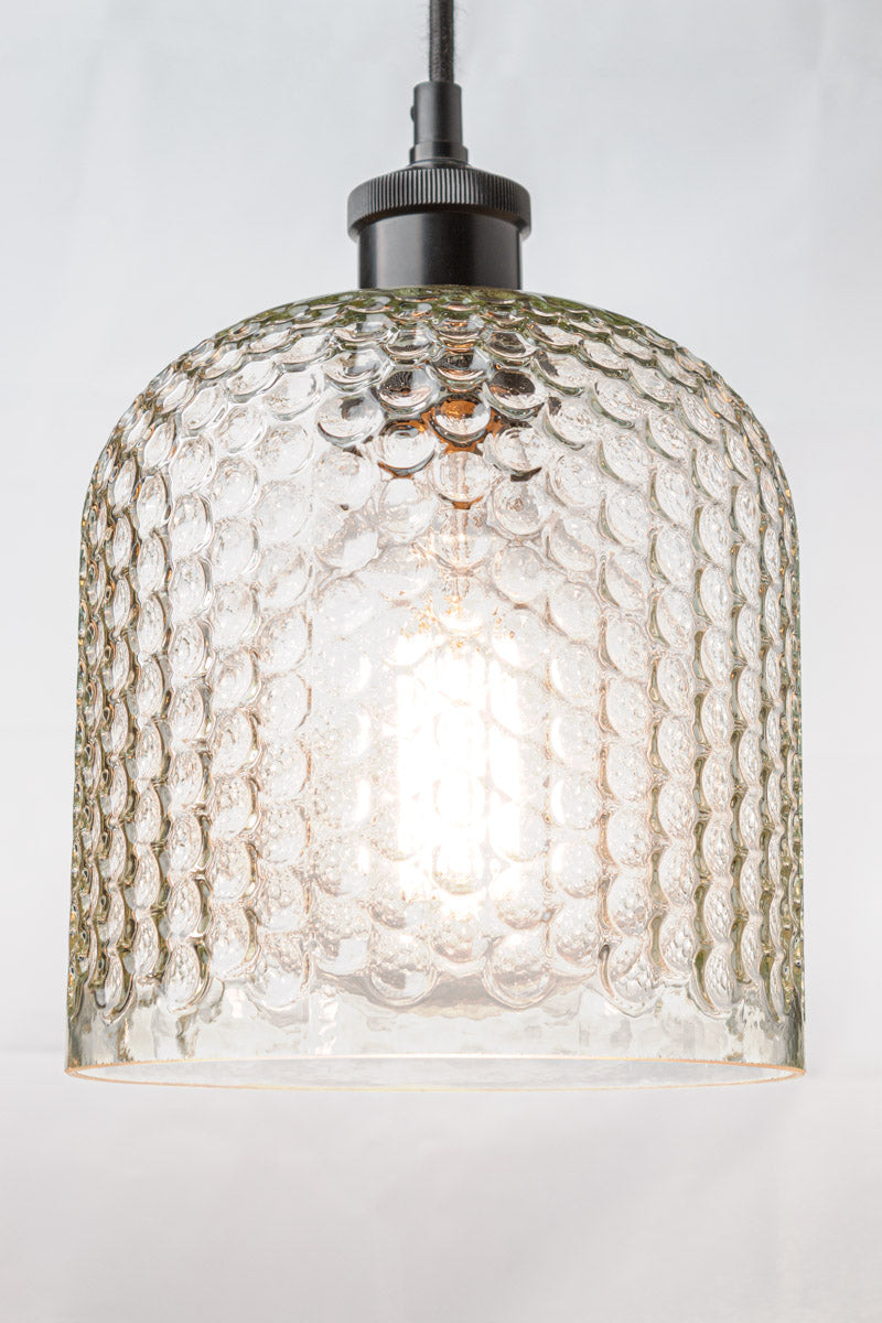 The Copa Glass Shade is a statement piece all on its own. It boasts a heavy glass offering a distinctive texture for timeless illumination in any room. Pair it with a cord, flush mount or wall sconce.