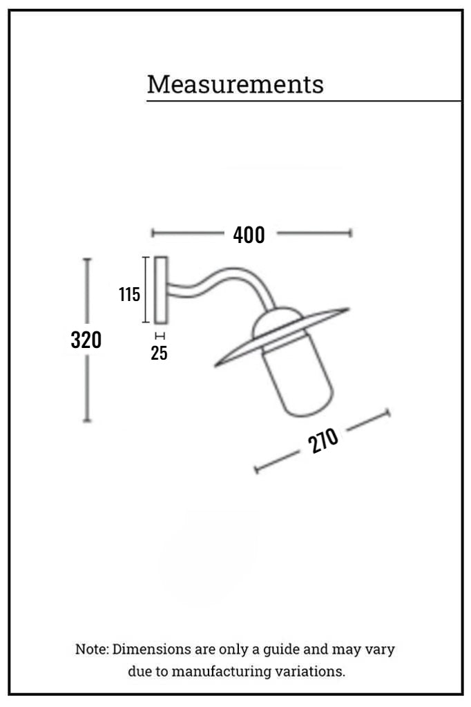 - Lampholder takes an E27 (screw-in) light bulb. Max 60W.