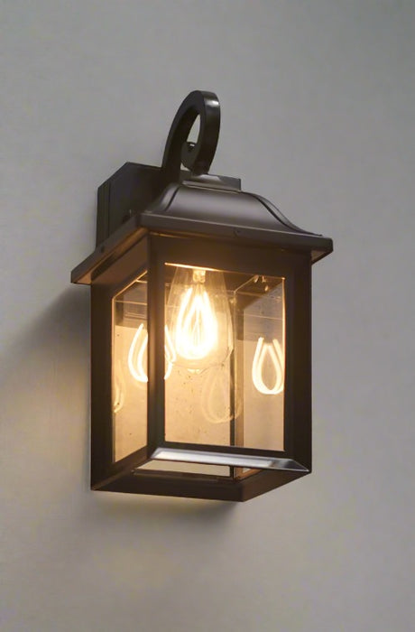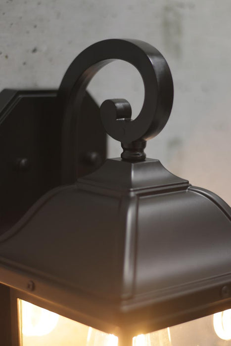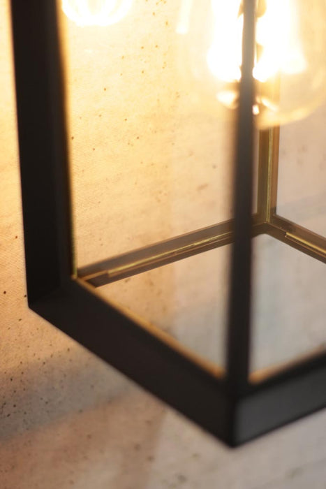 Our Cotswolds Exterior Wall Light is a modern take on a classic lantern. This exterior wall light is made from steel with a black finish. The front, sides and back of the light have clear glass panes for an added sophisticated touch. The bottom of the shade is open. Pair with a filament bulb for a real statement piece. With an IP23 rating, this light is ideal for covered outdoor areas. Perfect either side of a front door to illuminate the entrance or as feature light on a back patio.