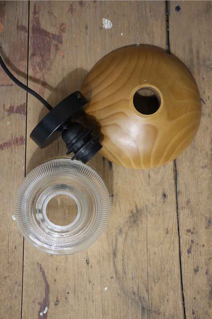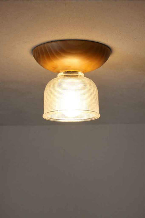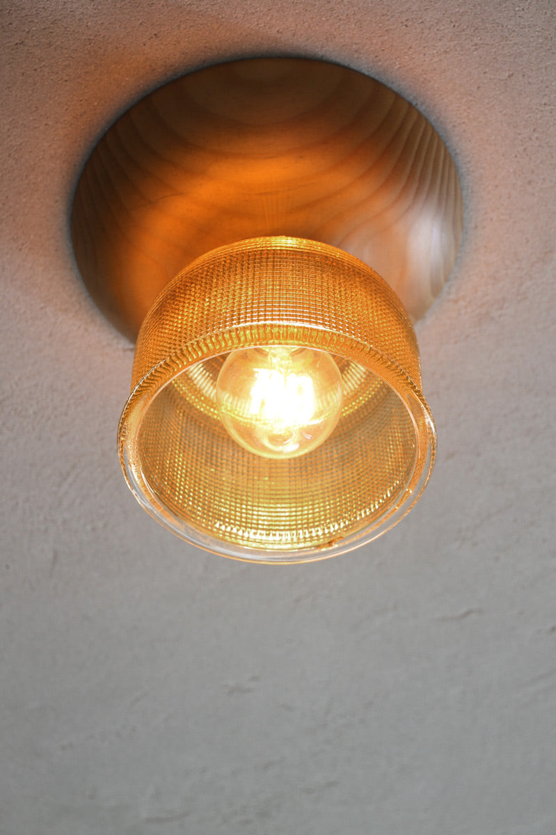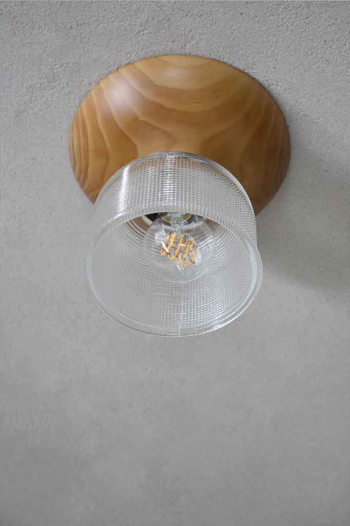 With it's solid wood base this Crosshatch Glass Ceiling Light will bring a warmth to any room. The vintage glass shade has a crosshatch pattern and is available in two colours to suit a range of decors. Made of Holophane glass, these types of shades were popular throughout the early 1900s. Ideal for any residential or commercial space wanting to add some good old vintage or retro flair.
