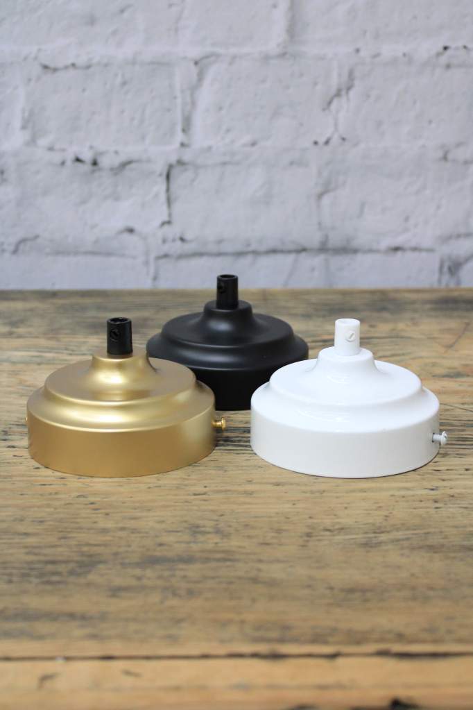 - The ceiling roses are made of metal with a matt black or white finish. Please note: the angled and eyelet ceiling roses are only available in black.