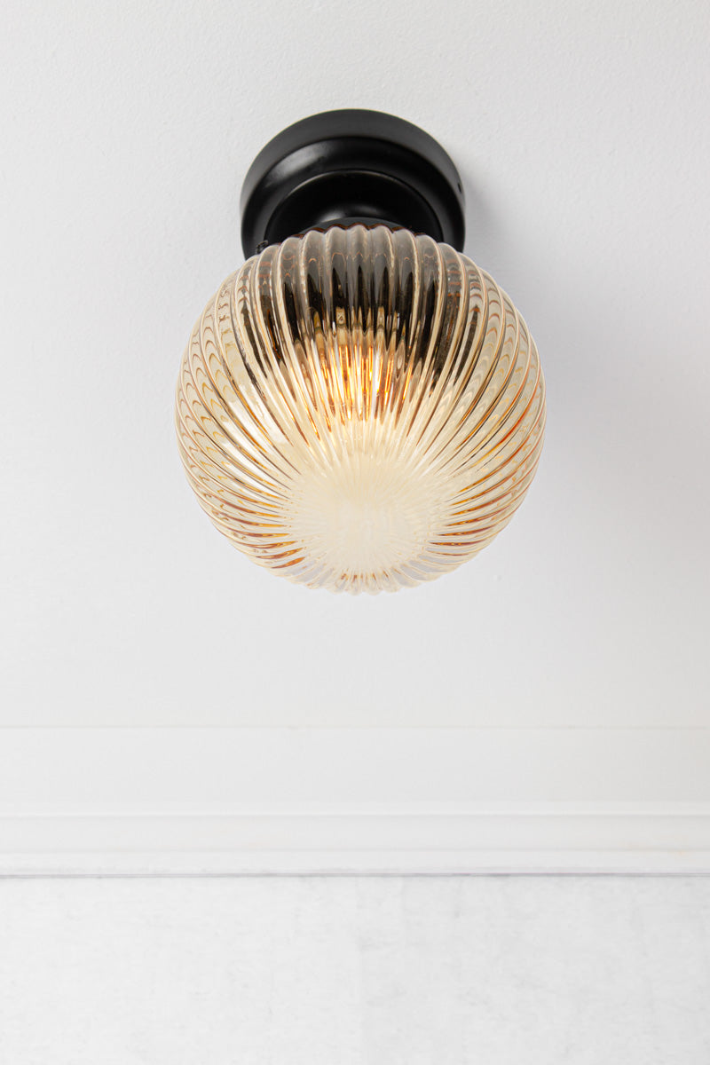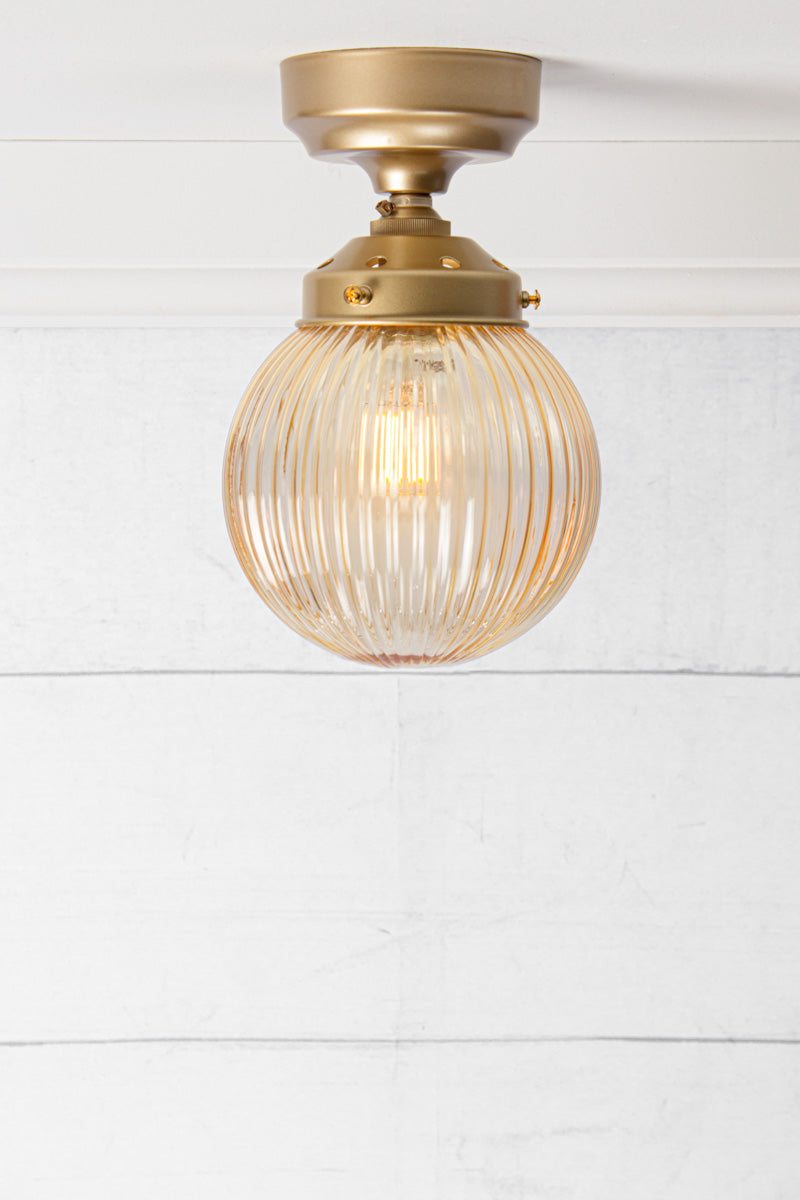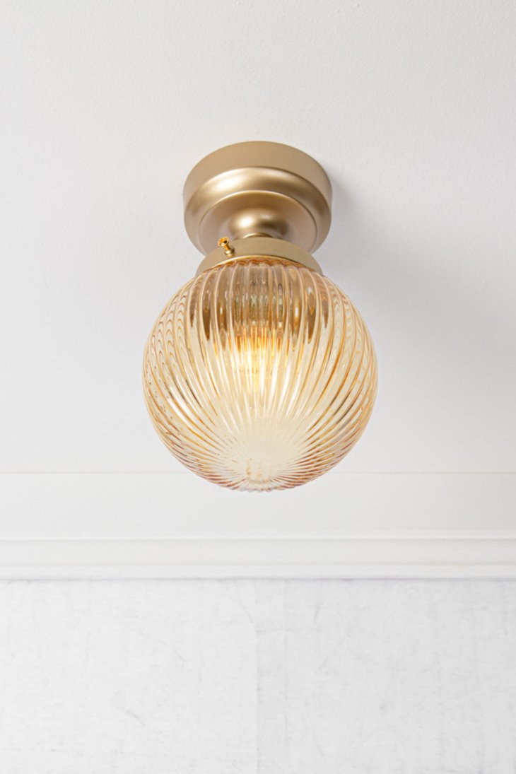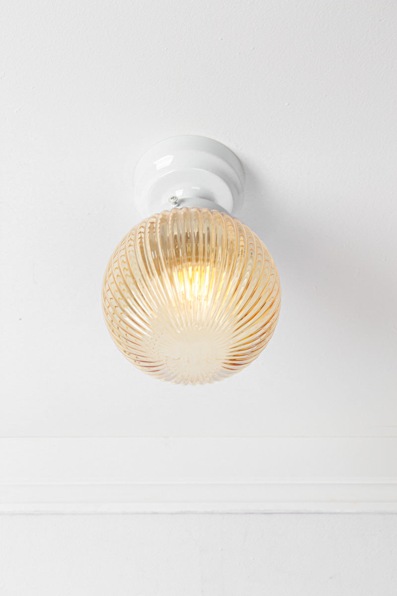 • Crafted with reeded glass, the shades are available in clear, amber or opal finishes.