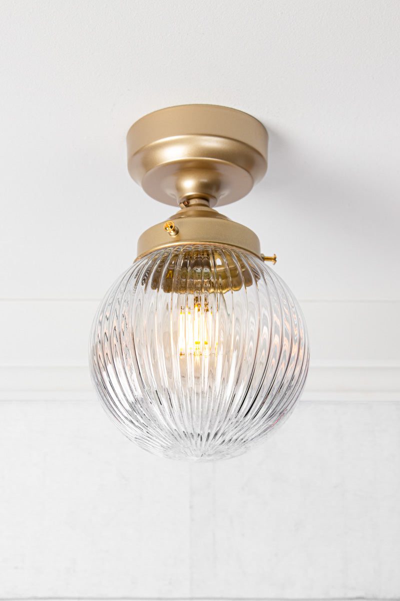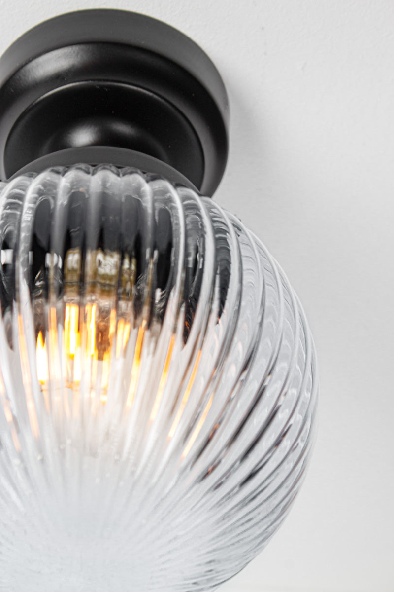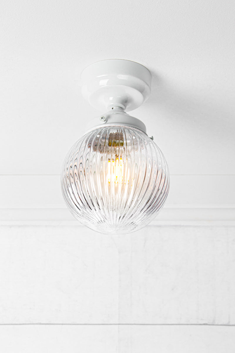 • Crafted with reeded glass, the shades are available in clear, amber or opal finishes.