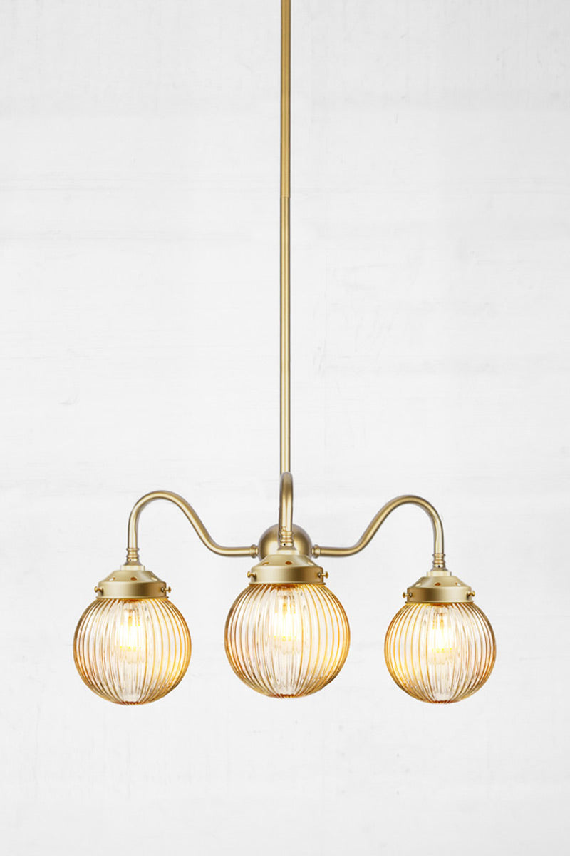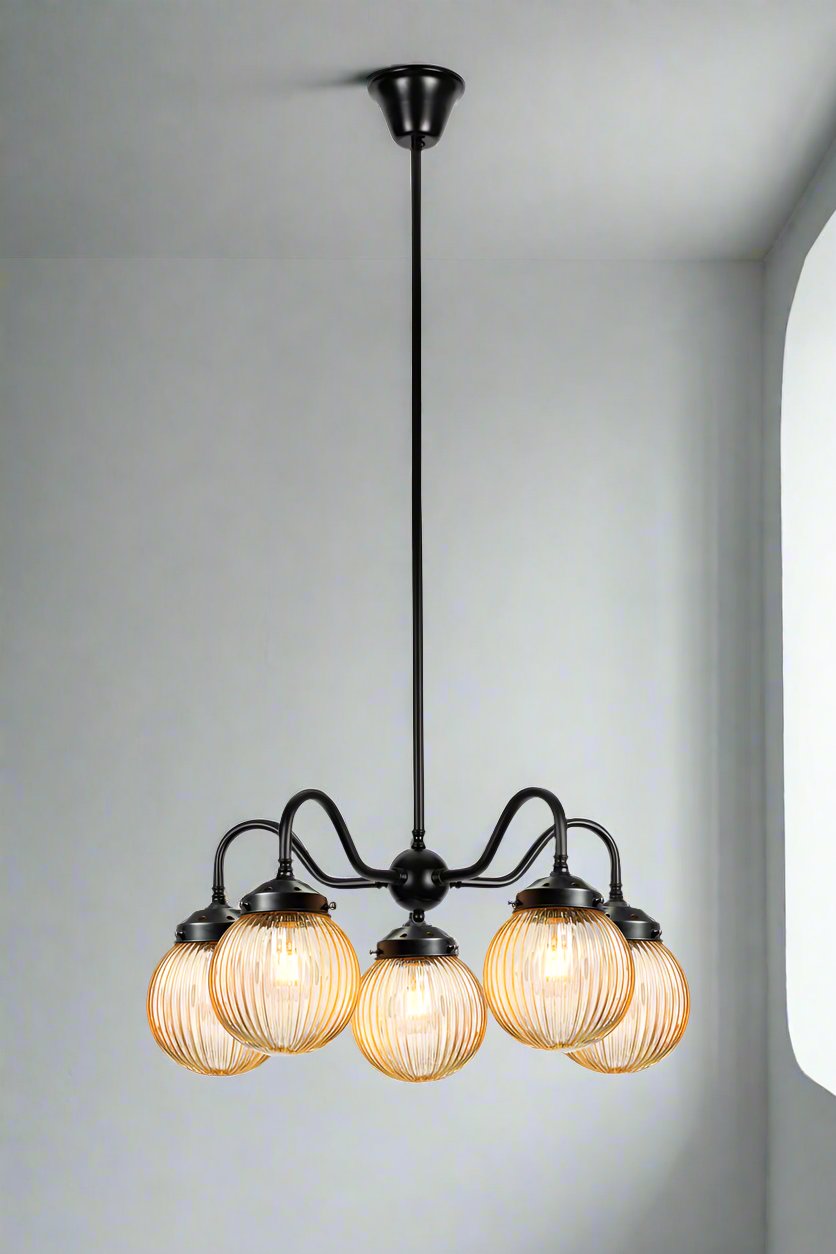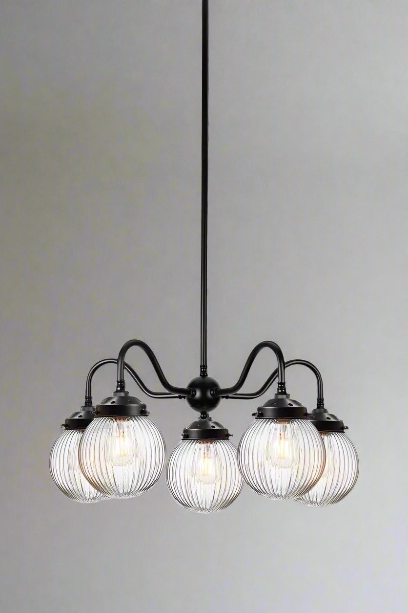 The Dakota Reeded Glass Chandelier adds classic design and great illumination to any living space. Compatible with a variety of interior styles, it features a clear, amber or opal glass shade with a distinctive reeded pattern. The steel multi light pendant comes in two finishes to complement most décors. It's unobtrusive form fits perfectly in bedrooms, dining areas, lounges or bars.