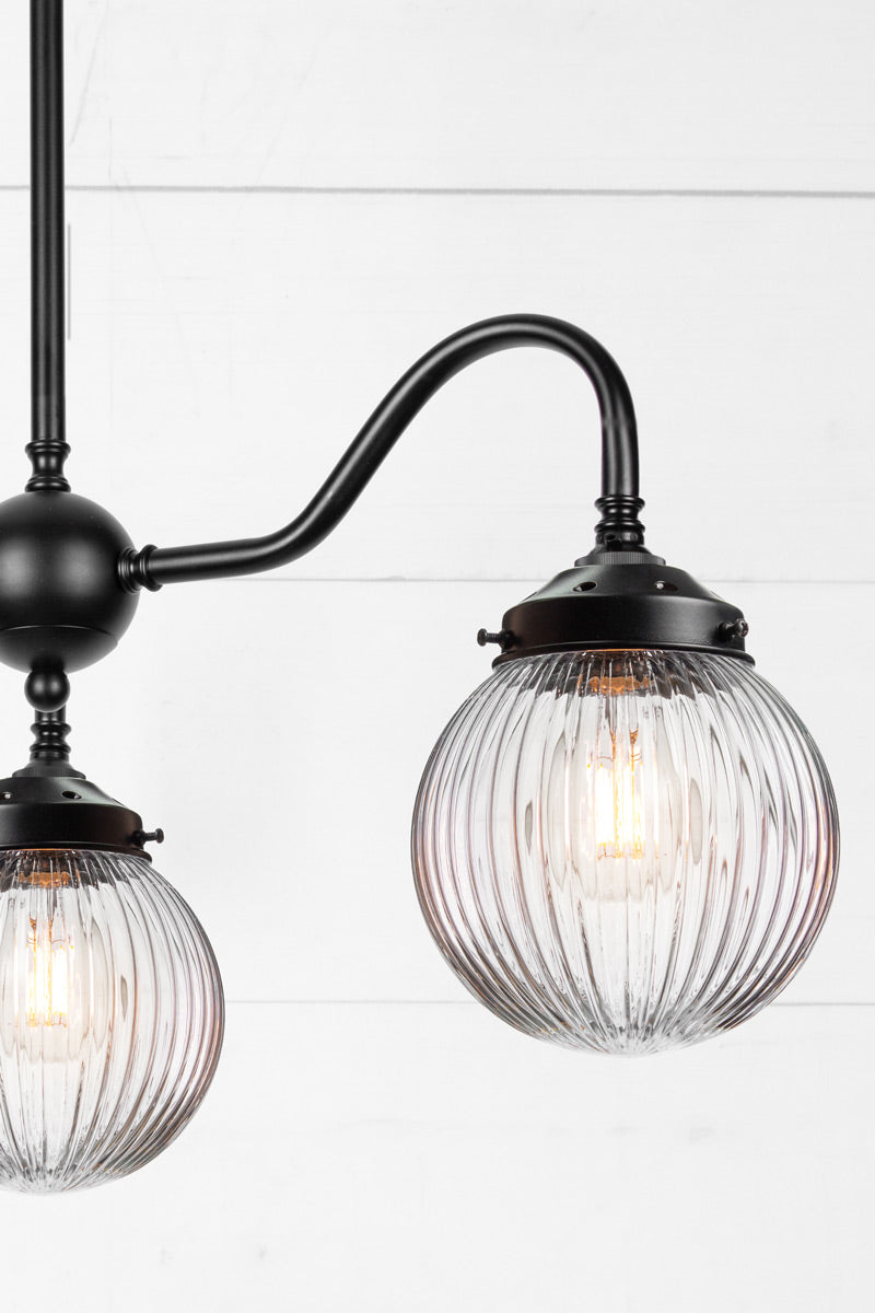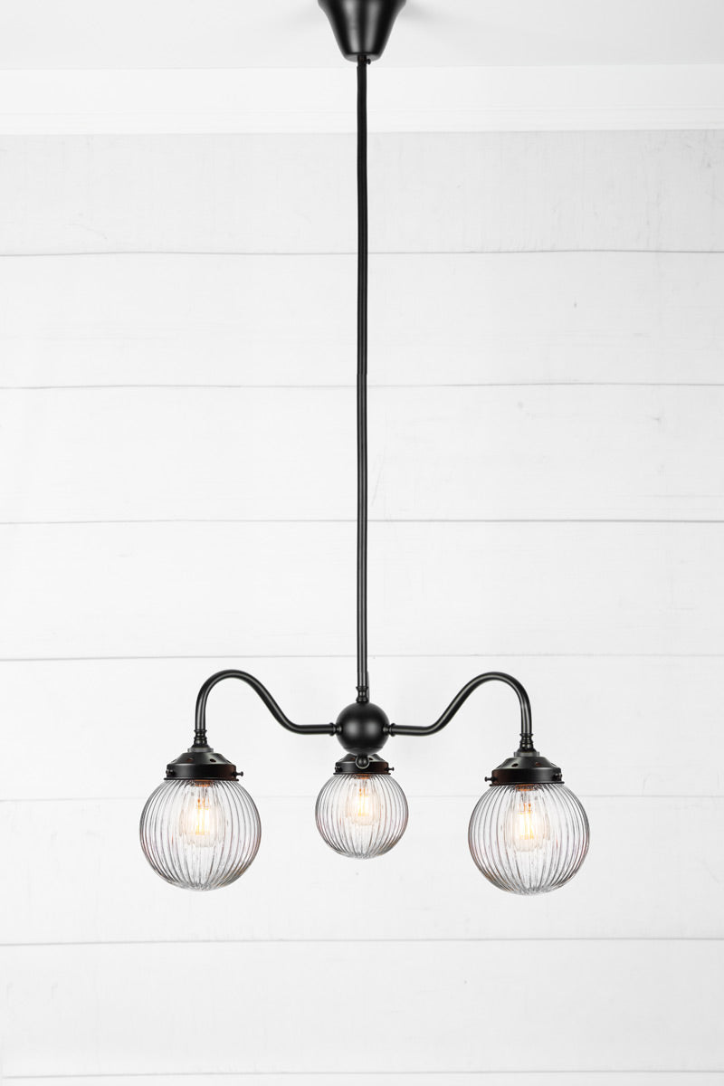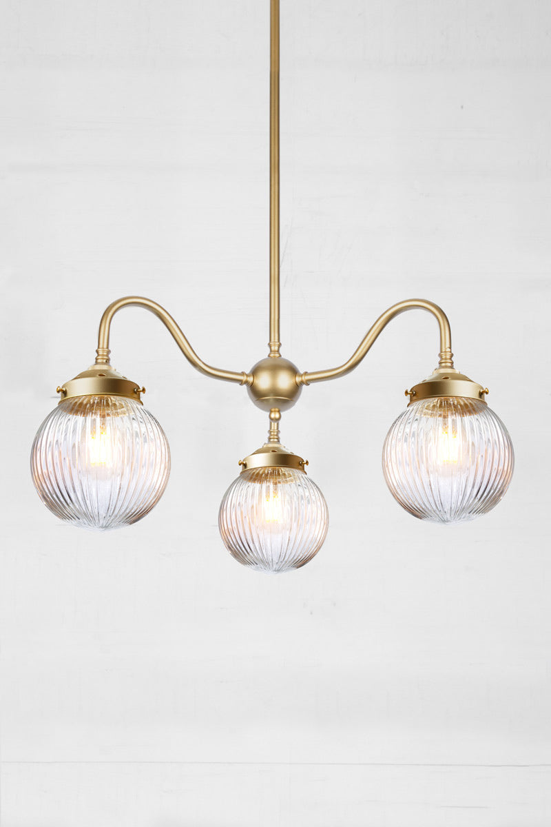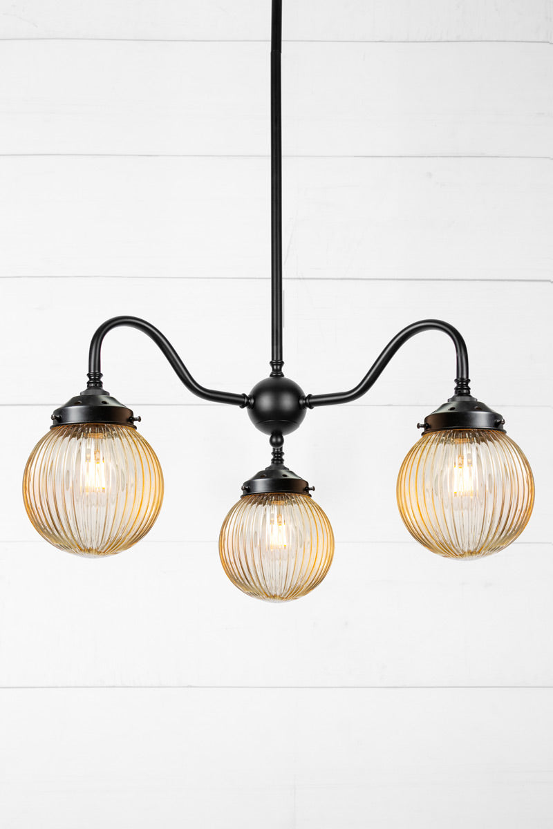 The Dakota Reeded Glass Chandelier adds classic design and great illumination to any living space. Compatible with a variety of interior styles, it features a clear, amber or opal glass shade with a distinctive reeded pattern. The steel multi light pendant comes in two finishes to complement most décors. It's unobtrusive form fits perfectly in bedrooms, dining areas, lounges or bars.