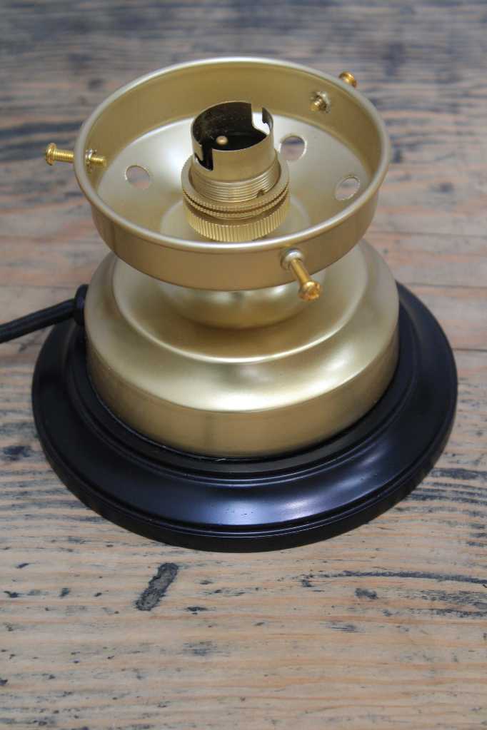 - The steel base comes in black or gold/brass finish and includes a black braided cloth cord.