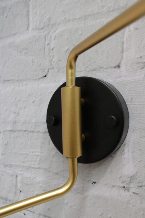 - Its two long and short arms have a brass finish and can move left and right independently.