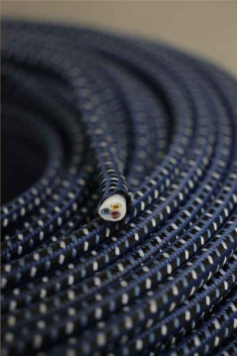 Dark Blue Striped Fleck Braided Light Cord - 3 Core Insulated Cable