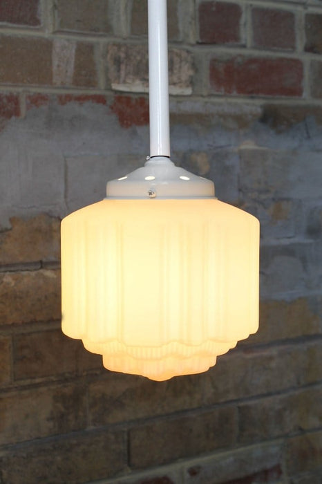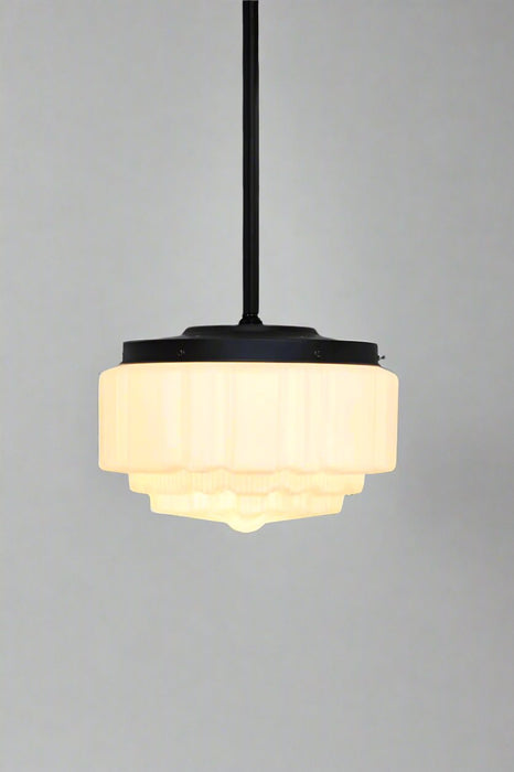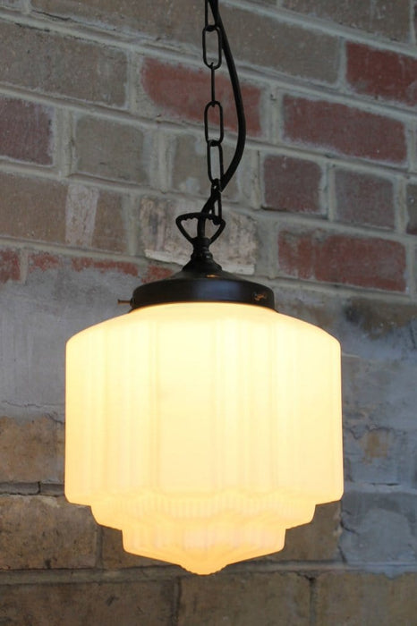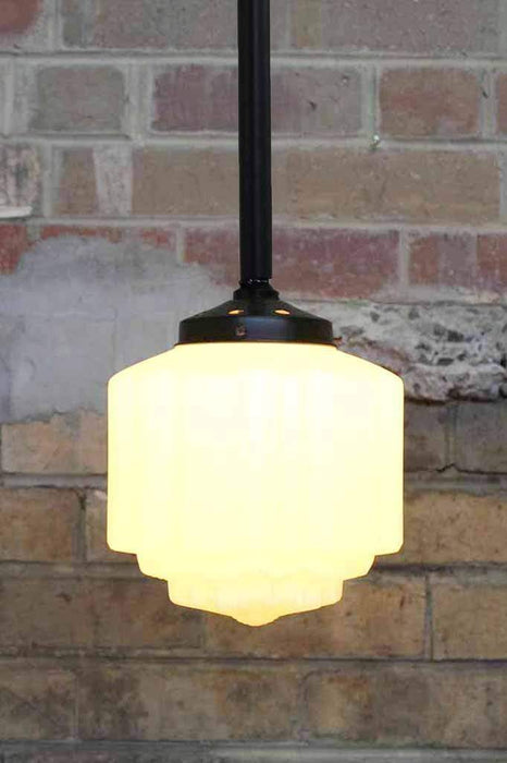 Bring art deco flair into your home or commercial fit-out with the Deco Glass Ceiling Pendant Light. Its pressed opal glass shade comes in two shade sizes and pairs with various suspension options to offer timeless appeal that can be incorporated into any contemporary or traditional room. Add period drama to your dining room, lounge or bedroom with the stunning geometric style of this pendant. Commercially, this light would add the final art deco touch to your vintage speakeasy, luxe hotel bar or intimate restaurant.