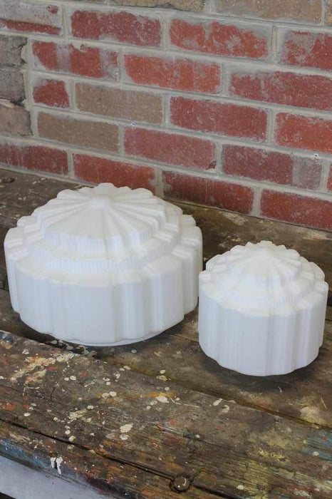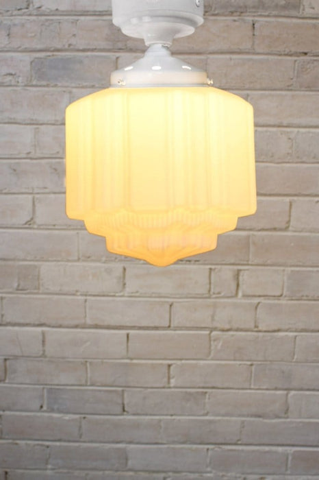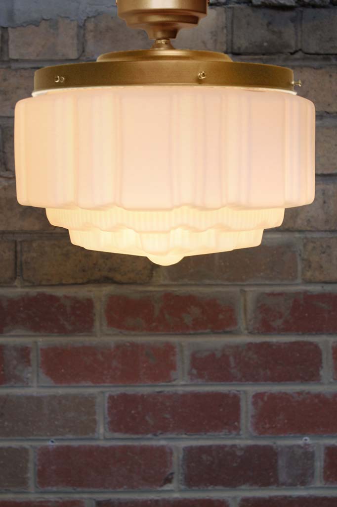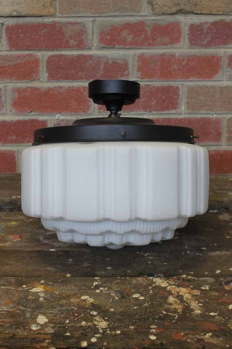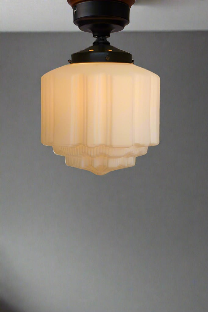 This Deco Glass Close To Ceiling Light will bring classic flair and timeless appeal into any contemporary or traditional room. Popular post-war, this light is a beautiful reproduction of art deco lighting. This pressed glass shade brings a unique sense of style and makes an elegant addition to any bedroom, hallway or space that a pendant light may not be suitable.
