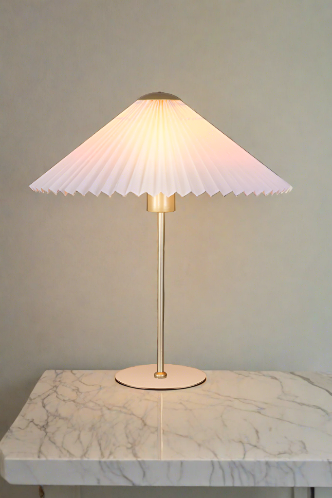 With a blend of elegant simplicity and timeless style, the Denbury Pleated Table Lamp easily integrates into any living space. Its sleek metalware is finished in gold brass. Paired with a pleated white shade, the lamp can elevate a range of décor and makes an ideal lighting accent for cafes and restaurant interiors, bedrooms and living spaces.