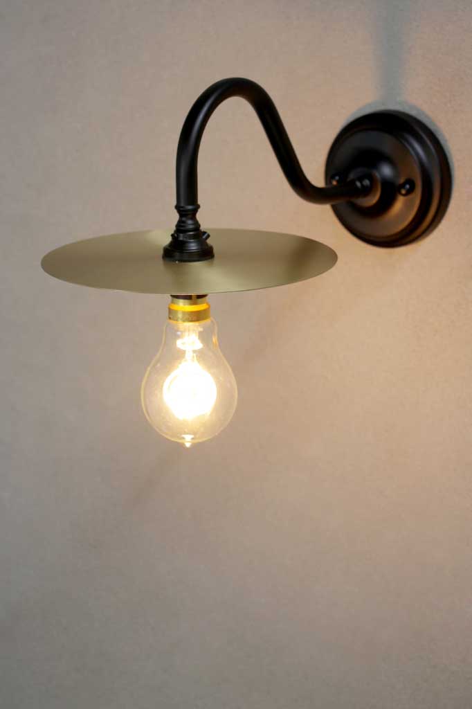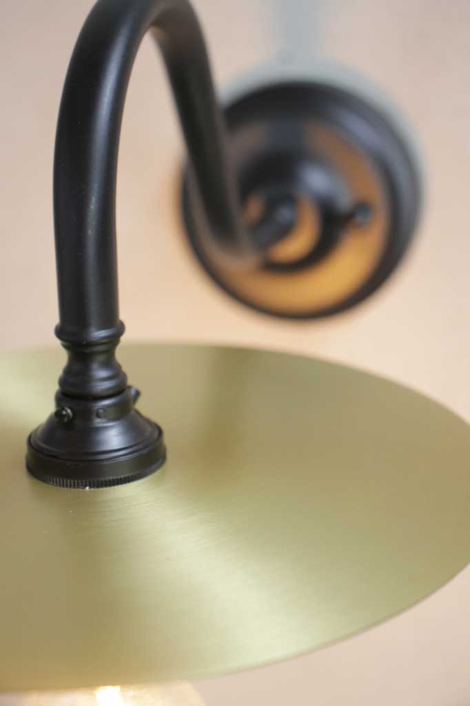 - The gooseneck and short arm sconce are fitted with a small disc of 180mm diameter while the long sconce is fitted with a large disc of 250mm diameter. Both disc sizes are 1mm in thickness.