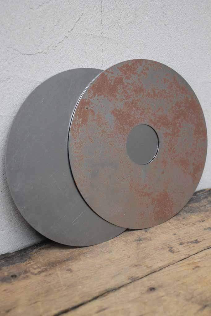 - These discs have varying degrees of minor scratches, scuffs and imperfections. They are laser cut from sheets using machinery and have a rough, industrial finish. These minor imperfections are not flaws or defects.