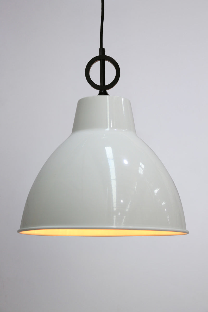 The Dixon Loft Pendant Light evokes the industrial charm of the 1940s to bring a classic statement for your living spaces. Its steel, copper or brass shade draws from the factory style shades of yesteryear and comes in a selection of finishes. Suspended from a black braided cloth cord accented with metalware in two styles and finishes, the pendant light is the perfect lighting feature for a kitchen island, dining room or café and restaurant interior.