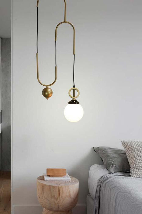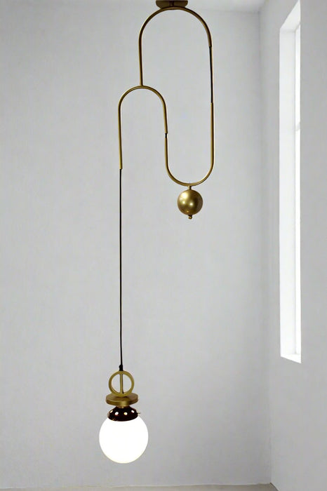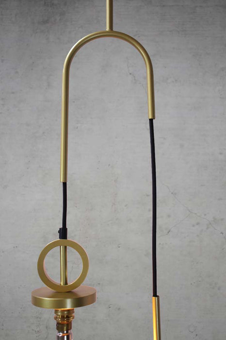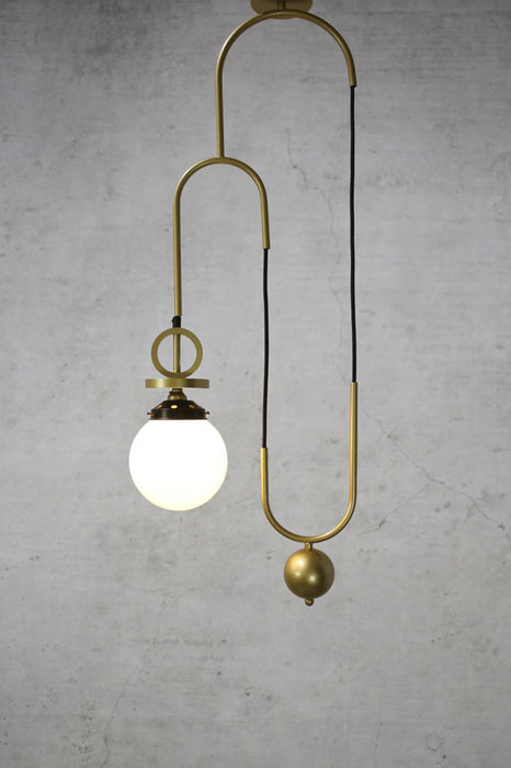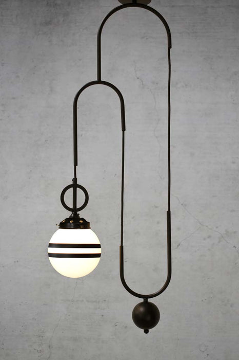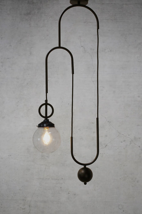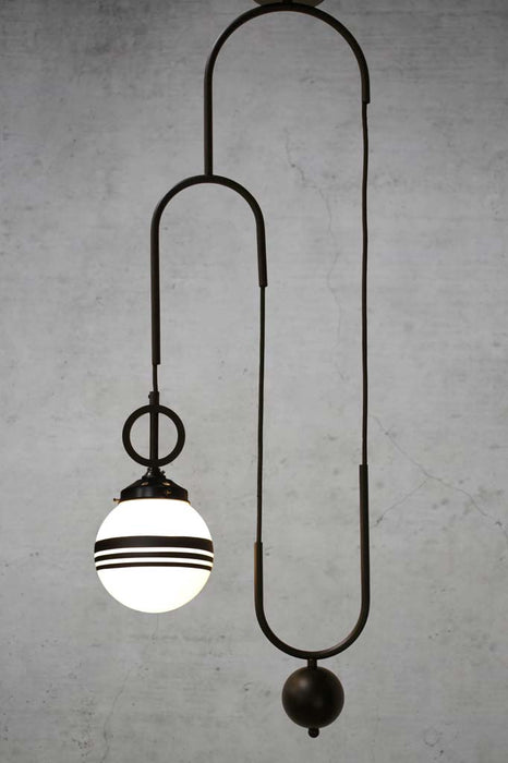Novel design meets vintage flair with the Dixon Pulley Glass Pendant Light to offer a singular update for any interior. The pendant cord fixtures come in three styles and is paired with a 1920s inspired handmade glass shade in closed ball or open end styles. The shade is suspended from a black braided cloth cord drawn through the metal framework and held in place with a weighted sphere. This pendant light adds a distinct finishing touch to your bedroom, living room or café and restaurant interior.