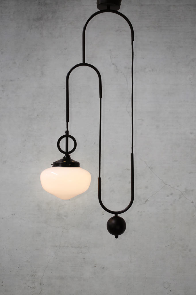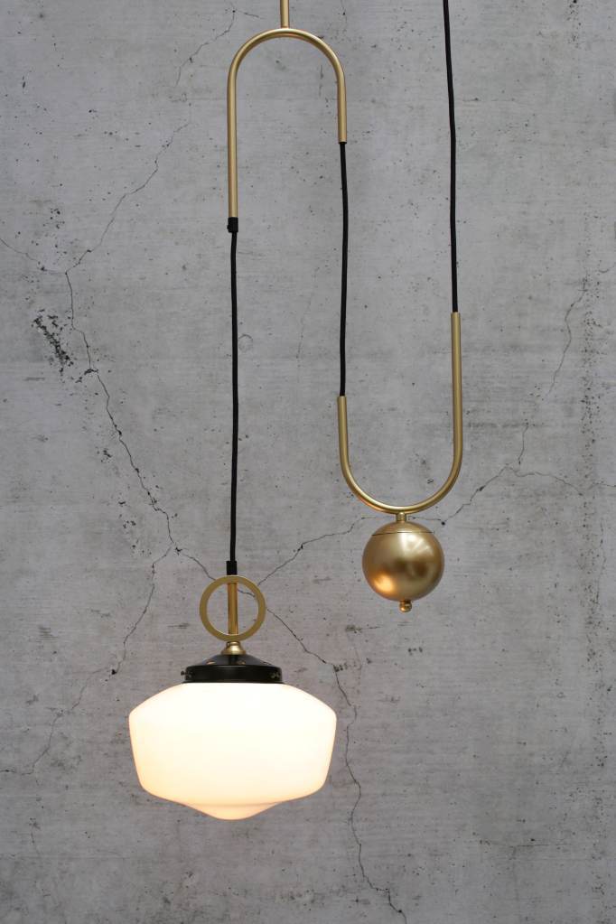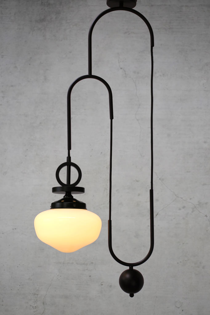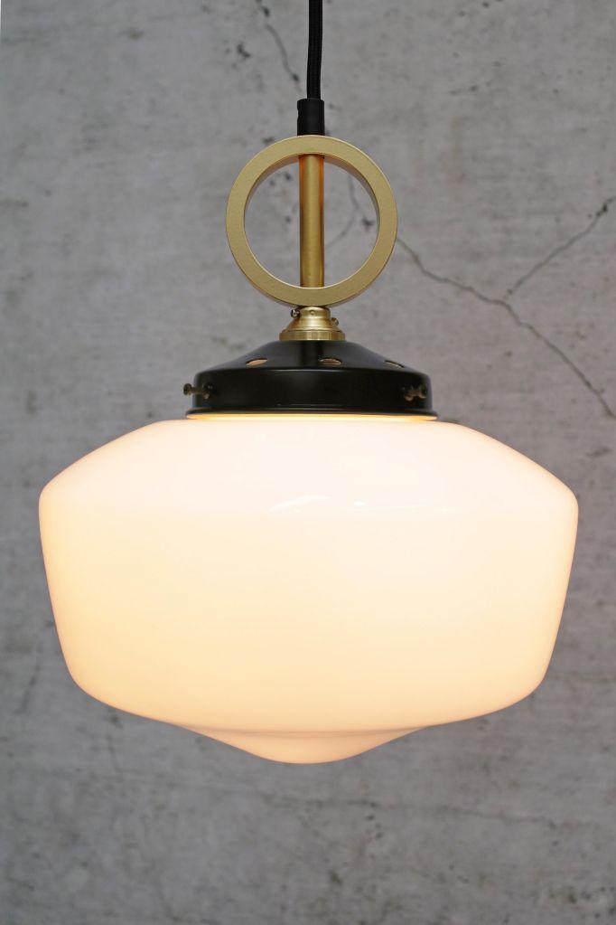 • It features an opal glass shade derived from the schoolhouse lighting styles of the 1920s. The shade is available in two sizes.