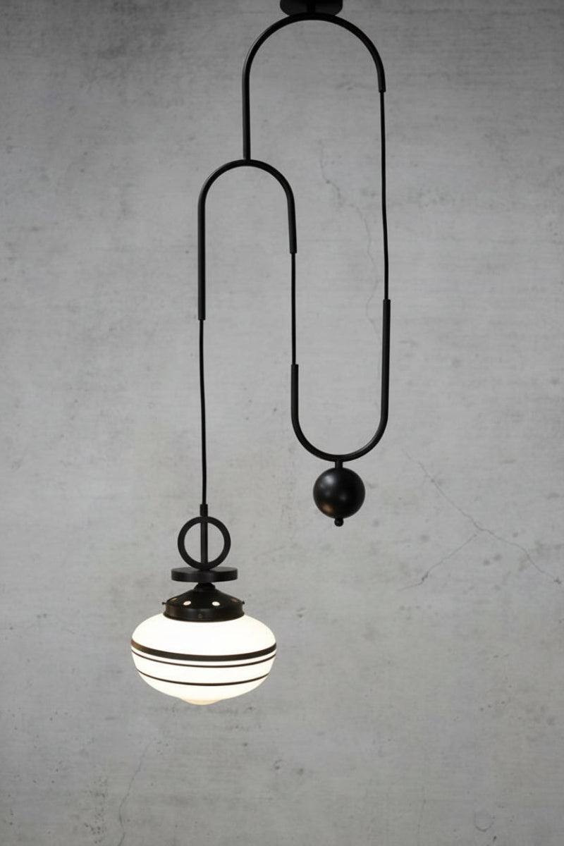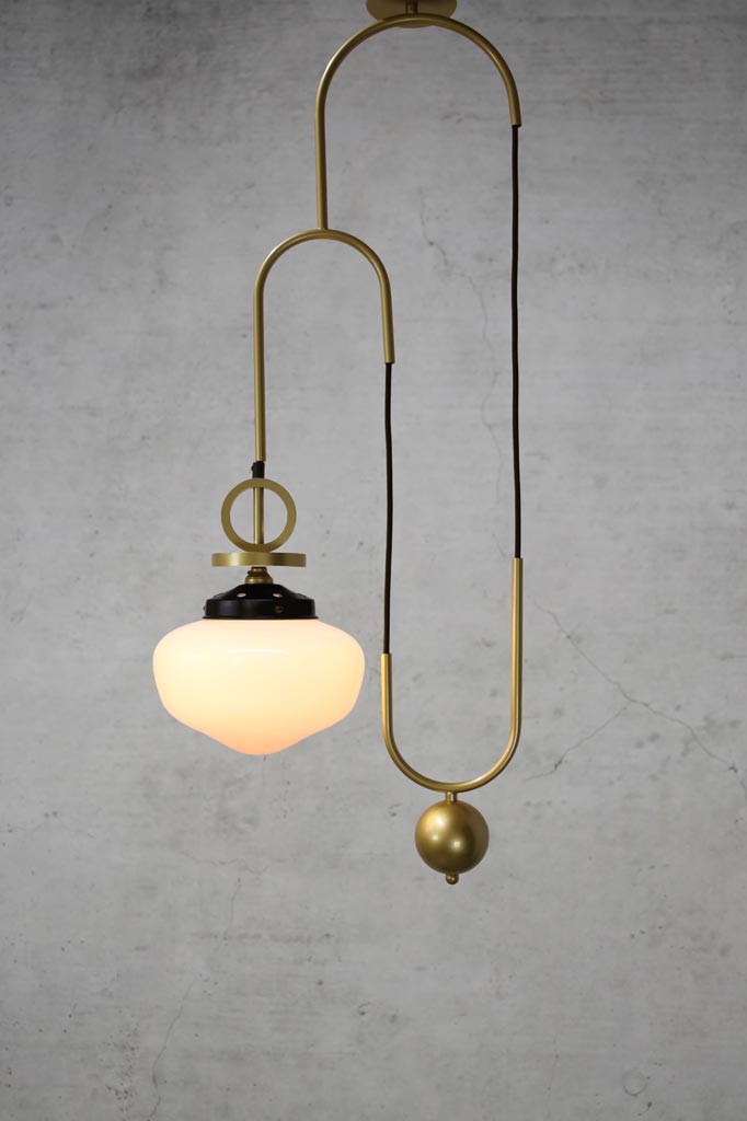The Dixon Pulley Washington Pendant Light brings innovative elegance with a touch of classic flair to your living spaces. Its suspension cord features a seamless arched metalware and comes in three styles to accent its handblown glass shade. The pulley mechanism allows drop length adjustment to produce varying looks and makes a stylish addition for bedsides, above dining tables and kitchen islands, and in commercial fitouts.