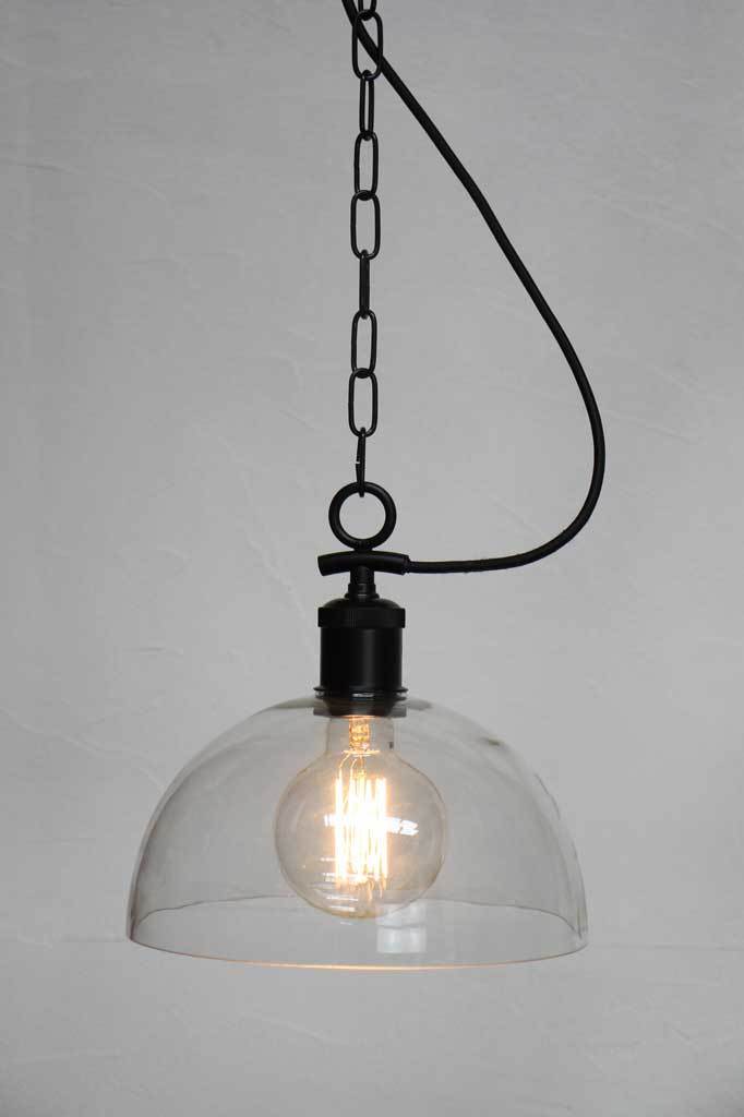 If you're after a practical light with good looks, the Dome Glass Pendant Light is an ideal choice. The clean curved glass shade juxtaposes with the black cord or chain suspension options to create an alluring light feature. Select your finish choice of pendant lampholder to add extra a character. This versatile light would complement a variety of interior spaces and styles including a winery, retail shop or urban styled residence.