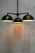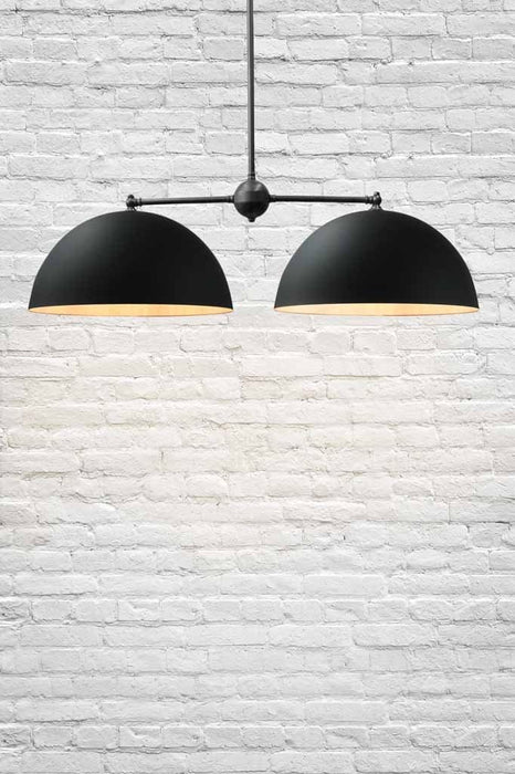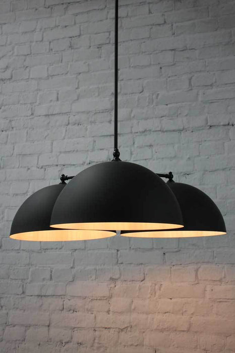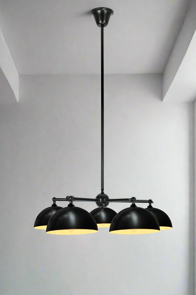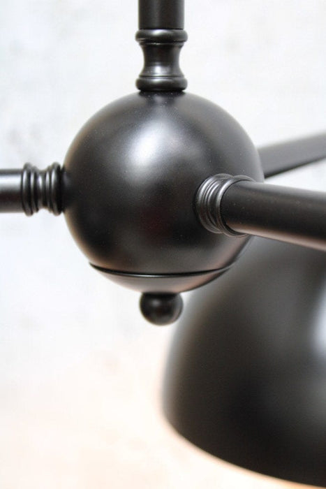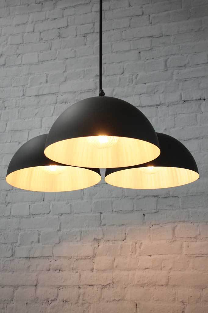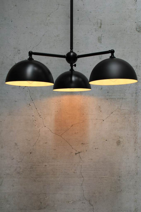 - The three arm steel suspension has straight arms and comes in Black or Gold/Brass finish, or in a five arm frame in black with small shades only.