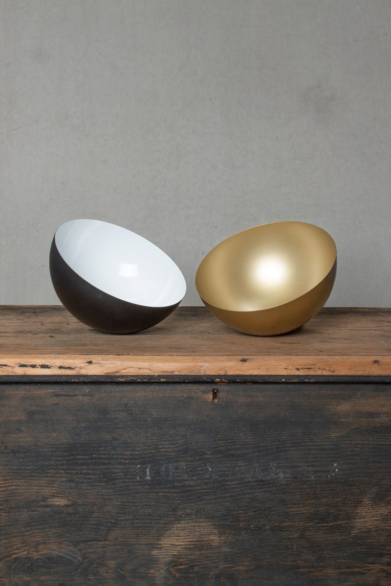 - The steel shades are available in black or gold/brass outer finish with a white inner finish.