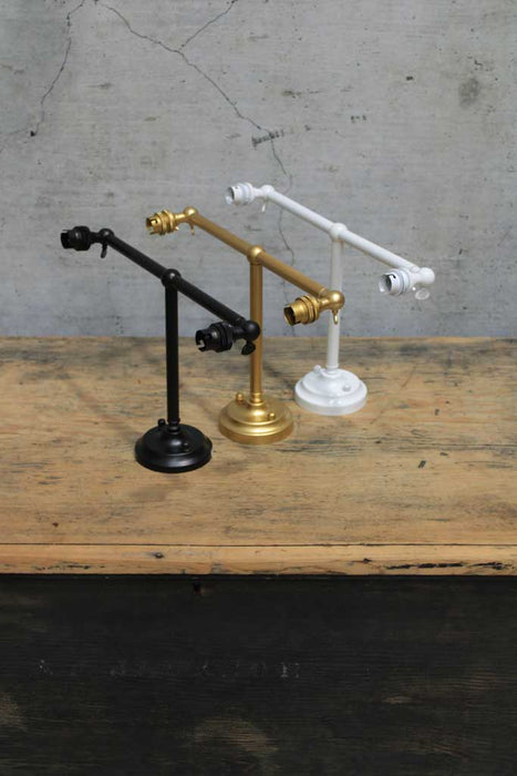 - Its double arm steel frame comes in black, gold/ brass and white finishes.