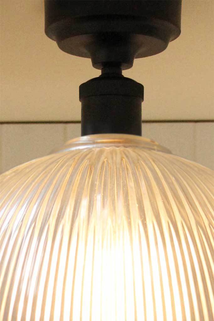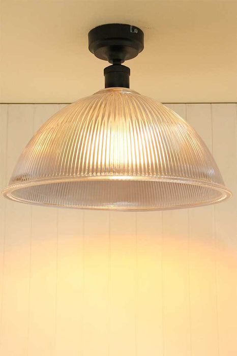 Add contemporary yet classic style to your home with the Durham Ceiling Light. Constructed from a ripped glass dome shade and a matt black metal lampholder, this flush mount ceiling light exemplifies the modern conversion of traditional old world design. Ideal for both residential and commercial spaces, this glass ceiling light would suit home libraries, dining rooms, and French bistro cafés.