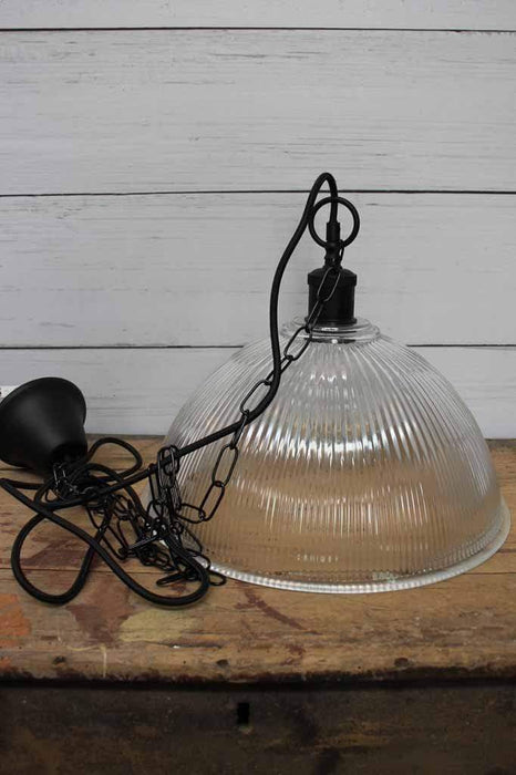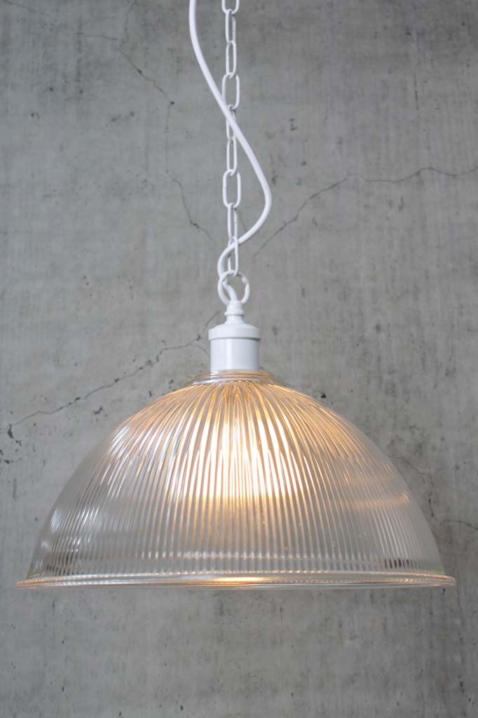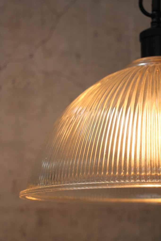 - Made from solid, heavy rippled glass, it has a chain/cord or rod suspension with no gallery.
