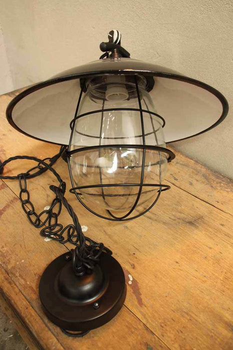Engine Room Hanging Light - Porcelain Enamel Shade