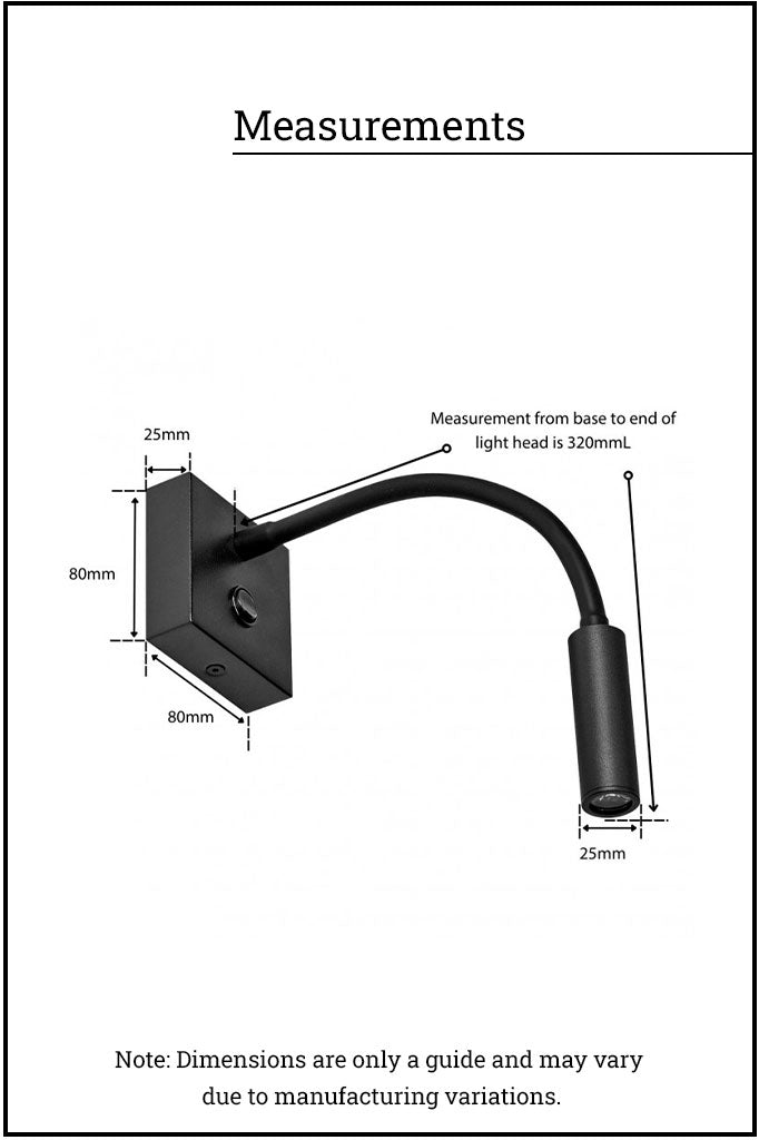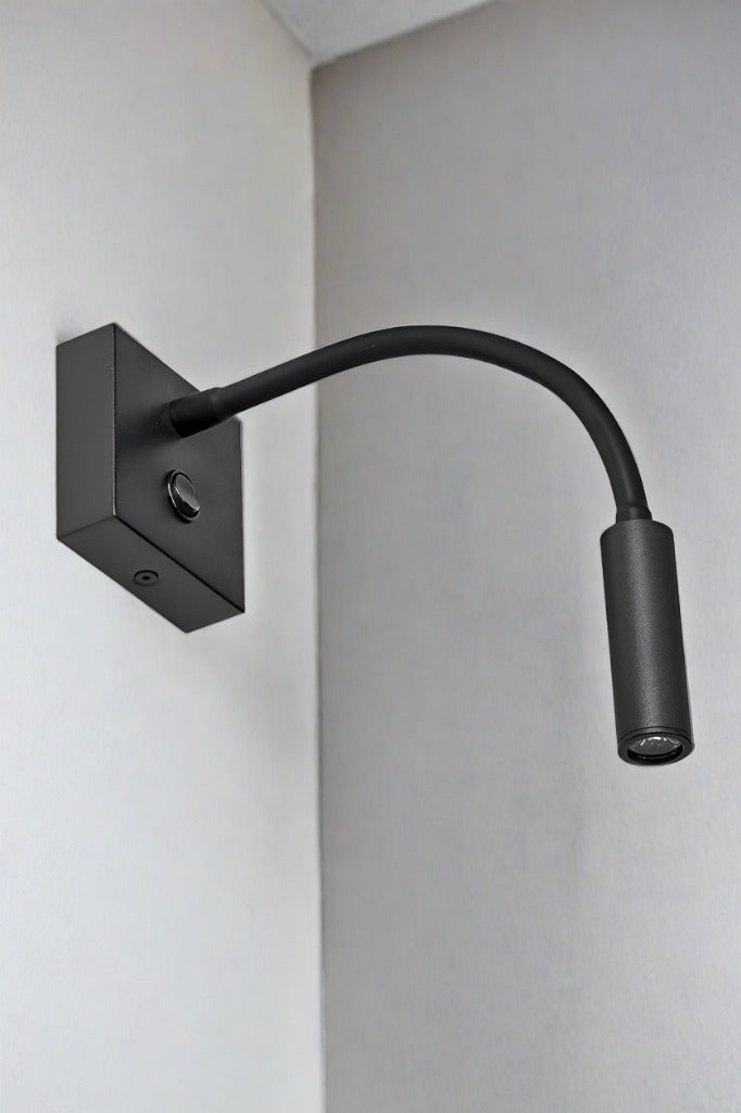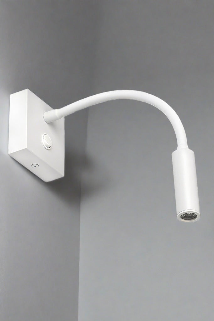 The Esk Bedside Flexi Spotlight is the perfect reading companion. Sleek and minimalist design this wall light provides a focused beam that is ideal for task lighting. This steel bedside spotlight is available in three finishes to complement any interior style. Place above a bedside table or built-in desk for attractive task lighting or consider styling above mirrors, artwork or signage to provide targeted illumination in commercial spaces.