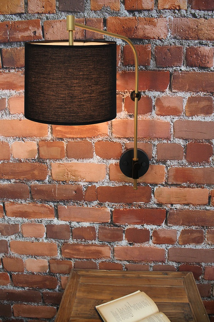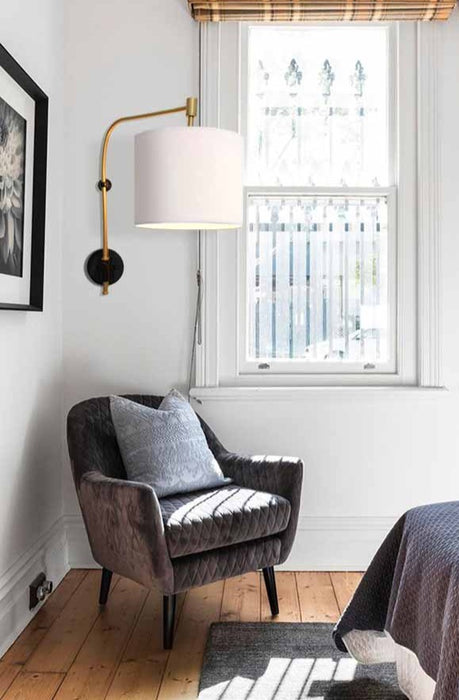 An instant update for both simple and plush interiors, the Fabric Wing Arm Wall Lamp brings warmth and atmosphere to any space. Suspended on a steel wall arm that can be swivelled left and right, its fabric shade creates an elegant diffused lighting accent. Complete with two contrasting shade finishes to suit your decor, the wall light includes a cord and switch option for DIY convenience. Ideal to illuminate low light niches, it easily adds character to your bar or cafe, reading nook, bedroom and hallway.