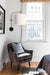 - Its fabric shade comes in black or white colour and produces diffused light.