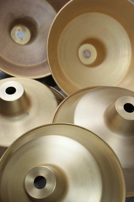 - The shades are available in eight finishes: Black, Aged Solid Copper, Bright Solid Copper, Federation Green and Vintage Steel. The White, Aged Solid Brass and Bright Brass shades pictured can be purchased separately here.