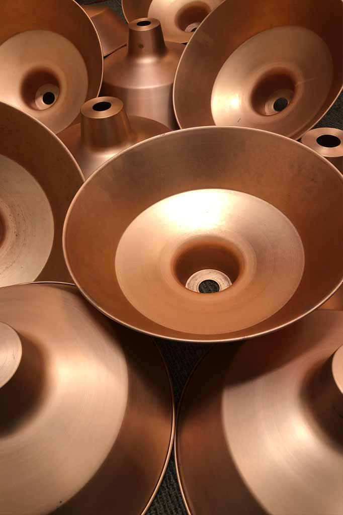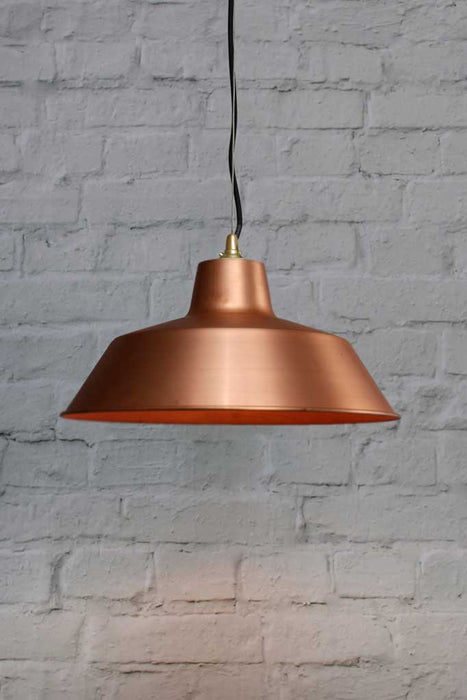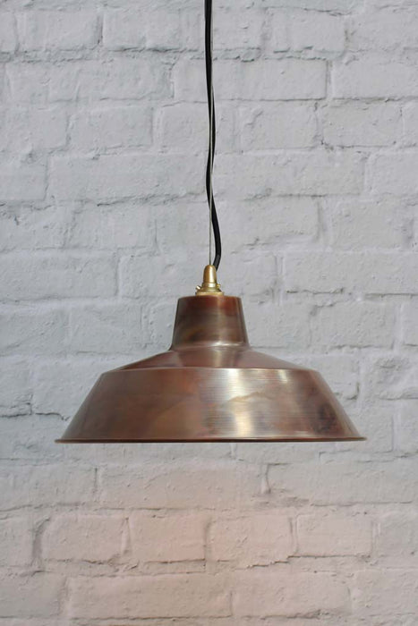 - The Copper shades have been fired for a deeper aged look. The Bright Copper shades have been mildly buffed on the outside to give them a brighter finish and then left raw. The inside is cleaned (not buffed) and then left raw. The shades are then oil rubbed to preserve the look for longer. Both finishes will continue to patina over time, dependent on the environmental conditions they are placed in. The bright finish will patina at a slower rate because of the oil-rubbed finish.