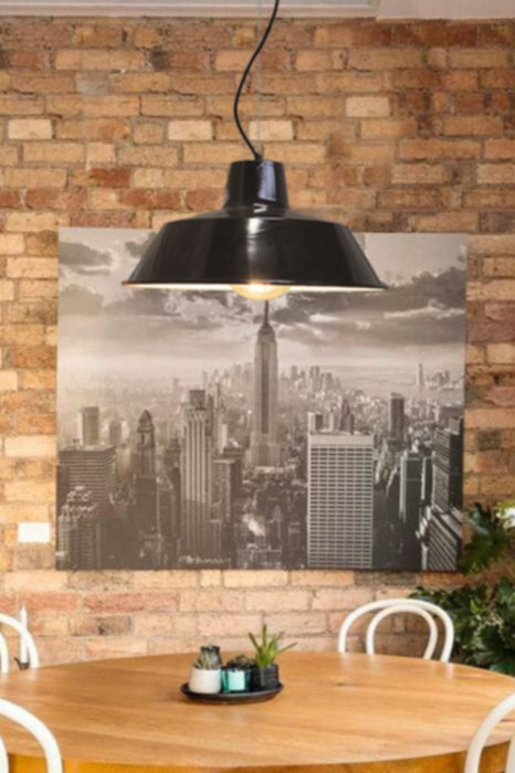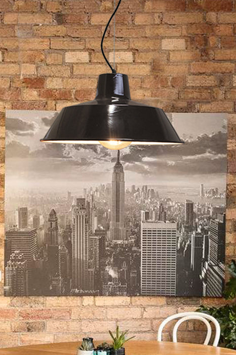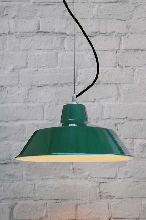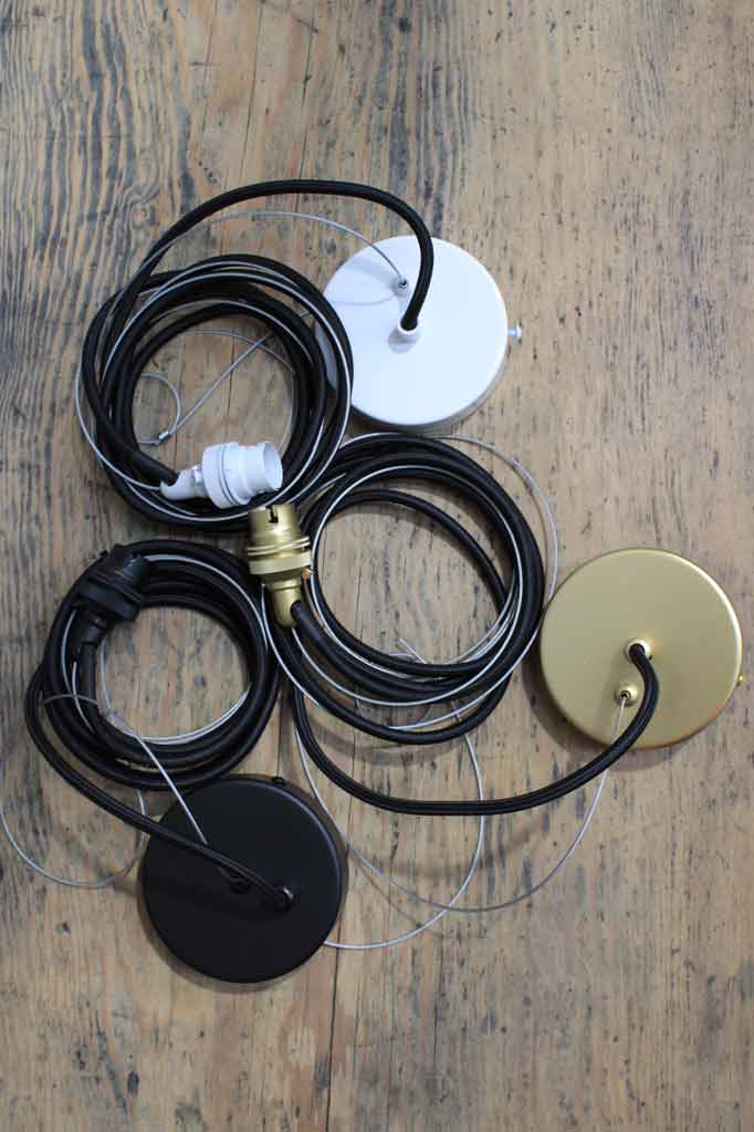 - The pendant light has a steel cable and black cloth cord with a maximum of 2 metres in length. It is designed to be easily shortened to any length required. The pendant is supplied with the black cord option, featuring a black metal lampholder, shade ring, and a ceiling rose.