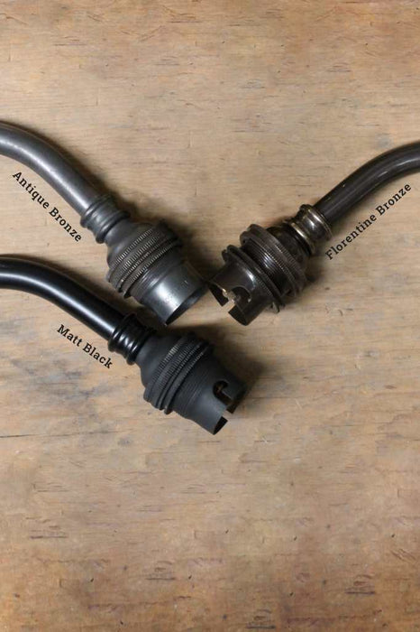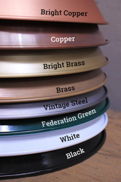 - The shades are available in eight finishes: Black, Aged Solid Brass, Bright Solid Brass, Aged Solid Copper, Federation Green and Vintage Steel.