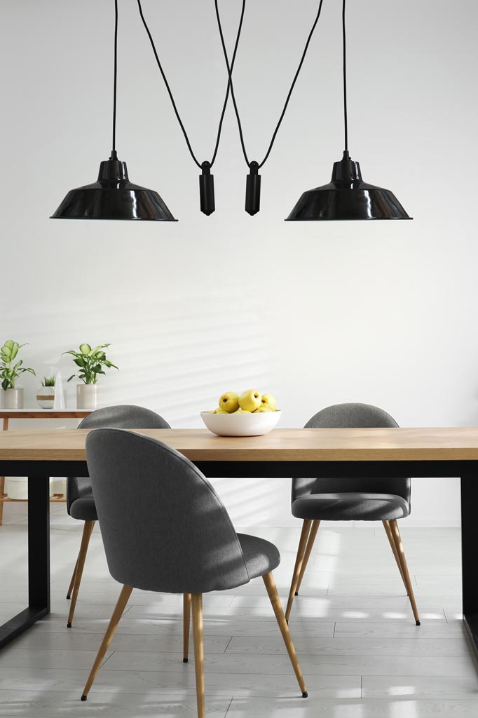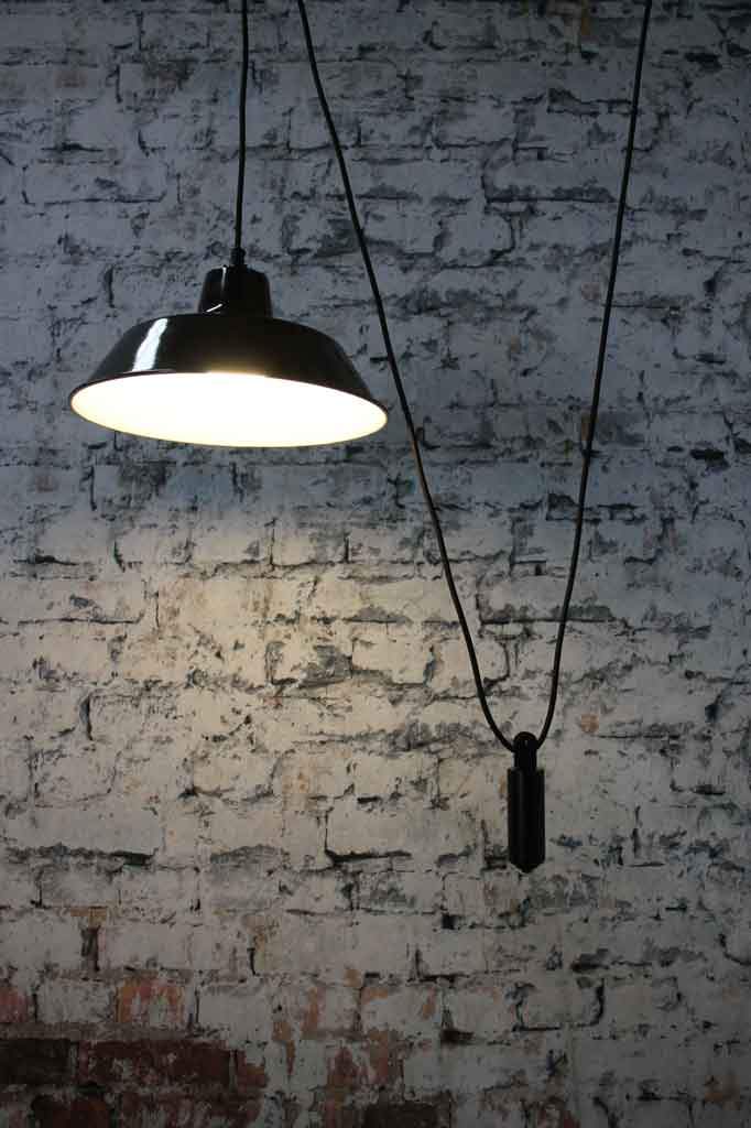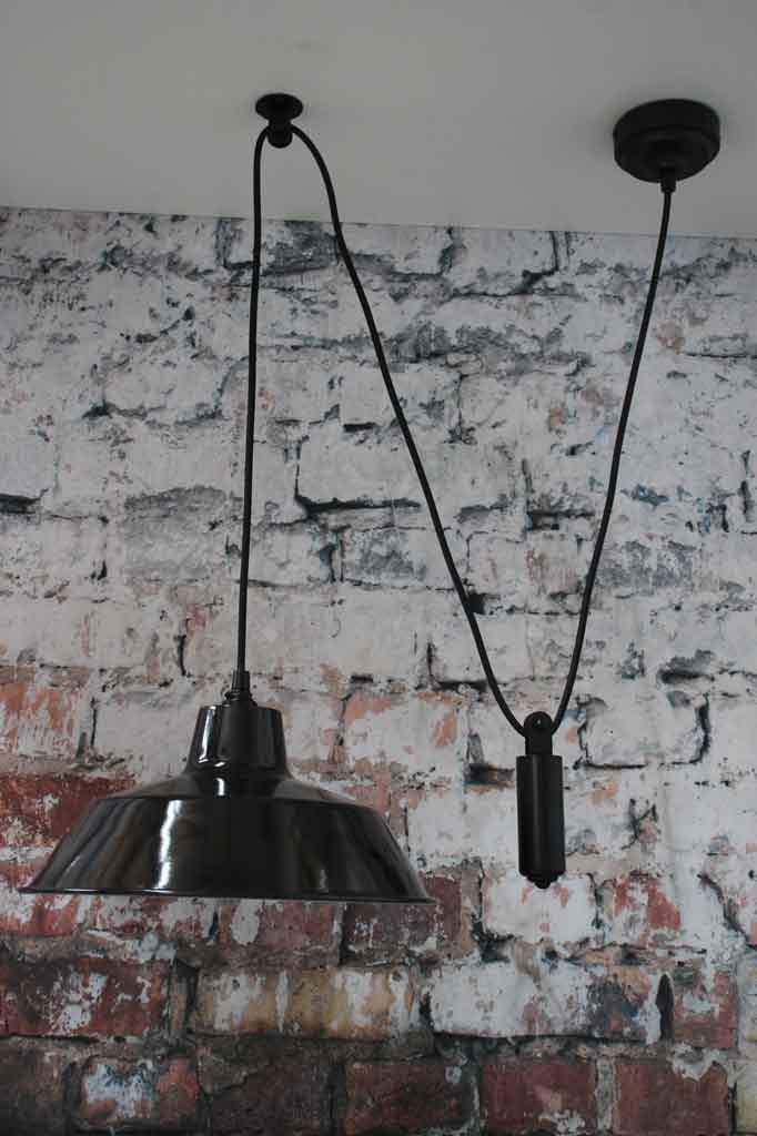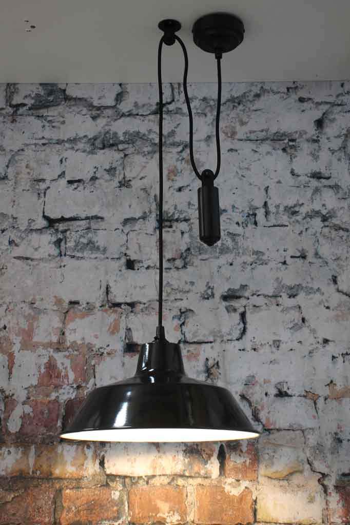 Our Factory Pulley Pendant Light takes our classic Factory Shade and combines it with versatile design. The pulley light features your choice of shade finish with a black cloth suspension cord drawn through a pulley mechanism and held in place with a weight. This allows a range of easily adjusted suspension lengths as well as widths to suit your space. Shade available in eight finishes. Use your creative flair and experiment with two to three or more pendant lights for a signature look.
