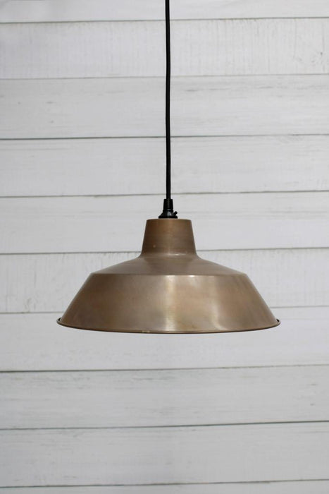 - The Aged Solid Brass/Copper shades have been fired for a deeper aged look. The Bright Brass/Copper shades have been mildly buffed on the outside to give them a brighter finish and then left raw. The inside is cleaned (not buffed) and then left raw. The shades are then oil rubbed to preserve the look for longer. Both finishes will continue to patina over time dependent on the environmental conditions they are placed in. The bright finish will patina at a slower rate because of the oil-rubbed finish.