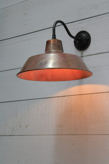 - The Aged Solid Brass/Copper shades have been fired for a deeper aged look. The Bright Brass/Copper shades have been mildly buffed on the outside to give them a brighter finish and then left raw. The inside is cleaned (not buffed) and then left raw. The shades are then oil rubbed to preserve the look for longer. Both finishes will continue to patina over time dependant on the environmental conditions they are placed in. The bright finish will patina at a slower rate because of the oil-rubbed finish.