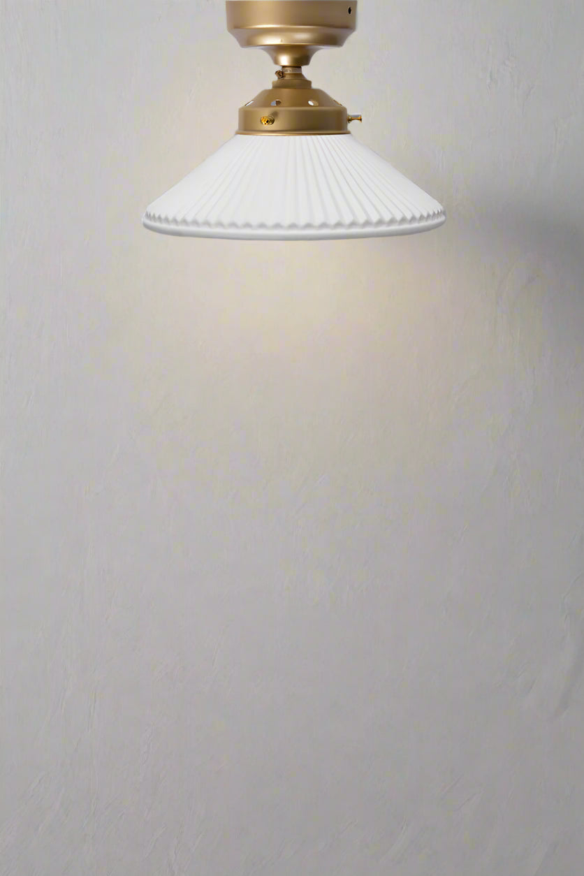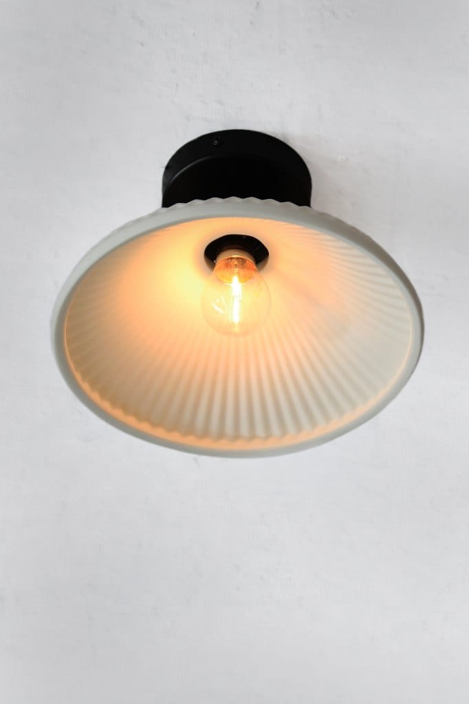 The Florence Pleat Ceramic Flush Mount Light will bring subtle antique charm to your home or commercial space. This light features a ceramic shade attached closely to the ceiling with an unobtrusive batten holder. The shade is unglazed, giving it a matt white finish with a small amount of translucently, allowing a soft glow to shine though the edges of the shade. The classic yet versatile shade is perfect for a range of spaces.