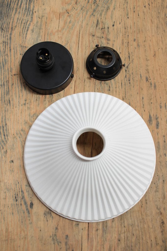 - The ceramic shade is fitted to the batten holder with a matching gallery.