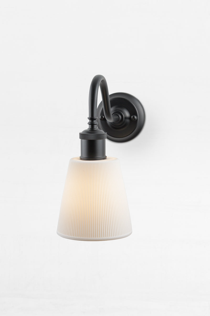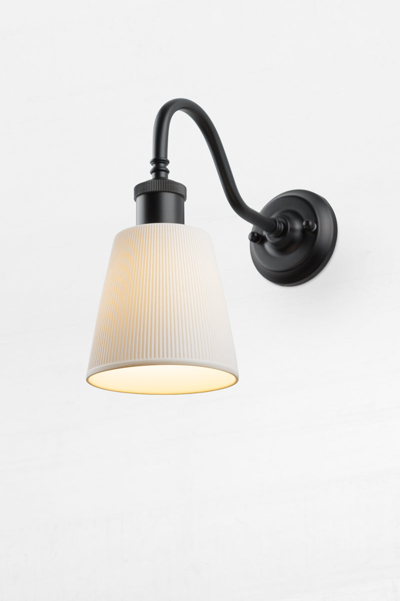 - Each black wall sconce is paired with the appropriately sized shade: large shades pair with the long straight arm and gooseneck arm; small shades pair with the short straight arm.
