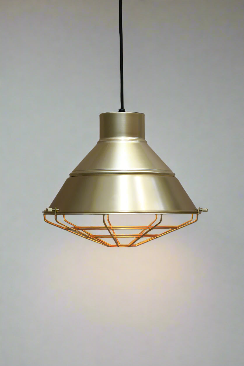 - The black fabric pendant cord has a black ceiling rose and black, white or gold top shade cover.