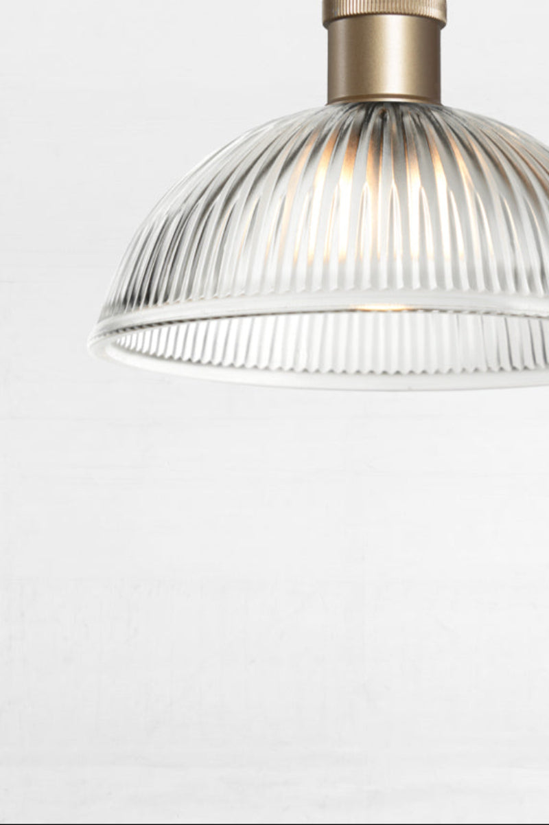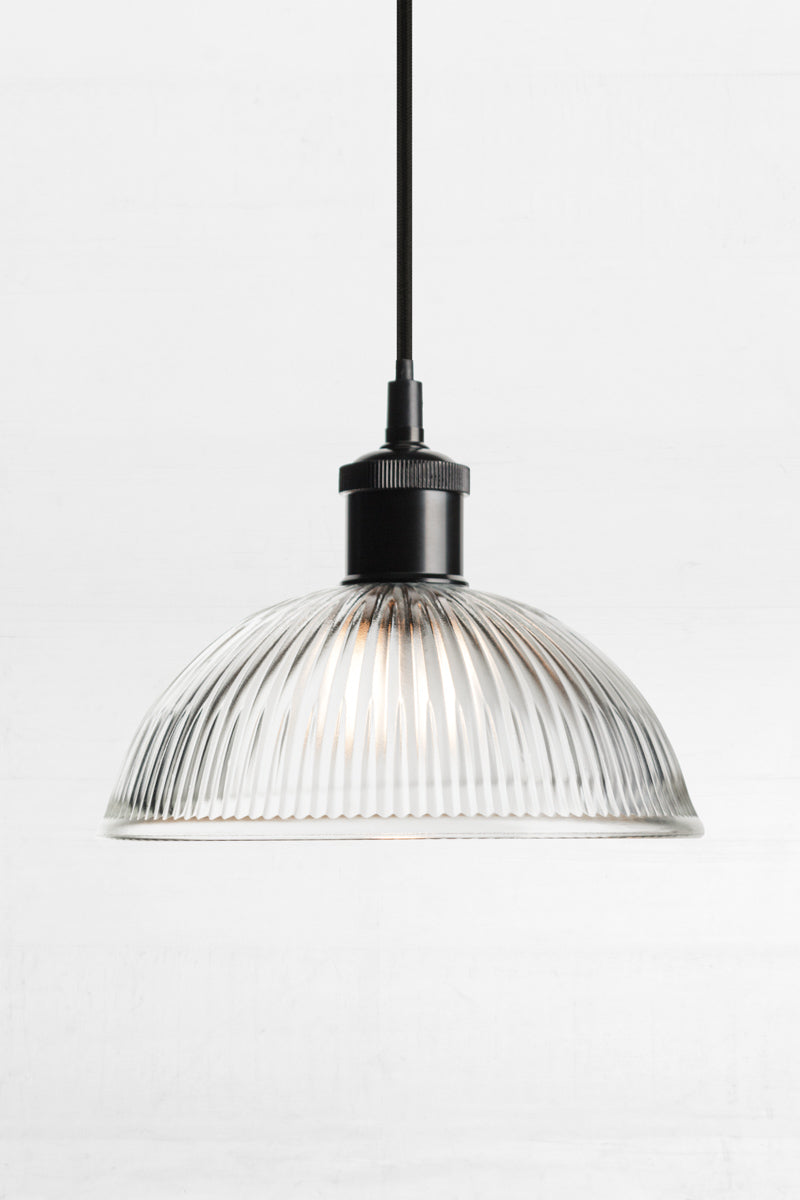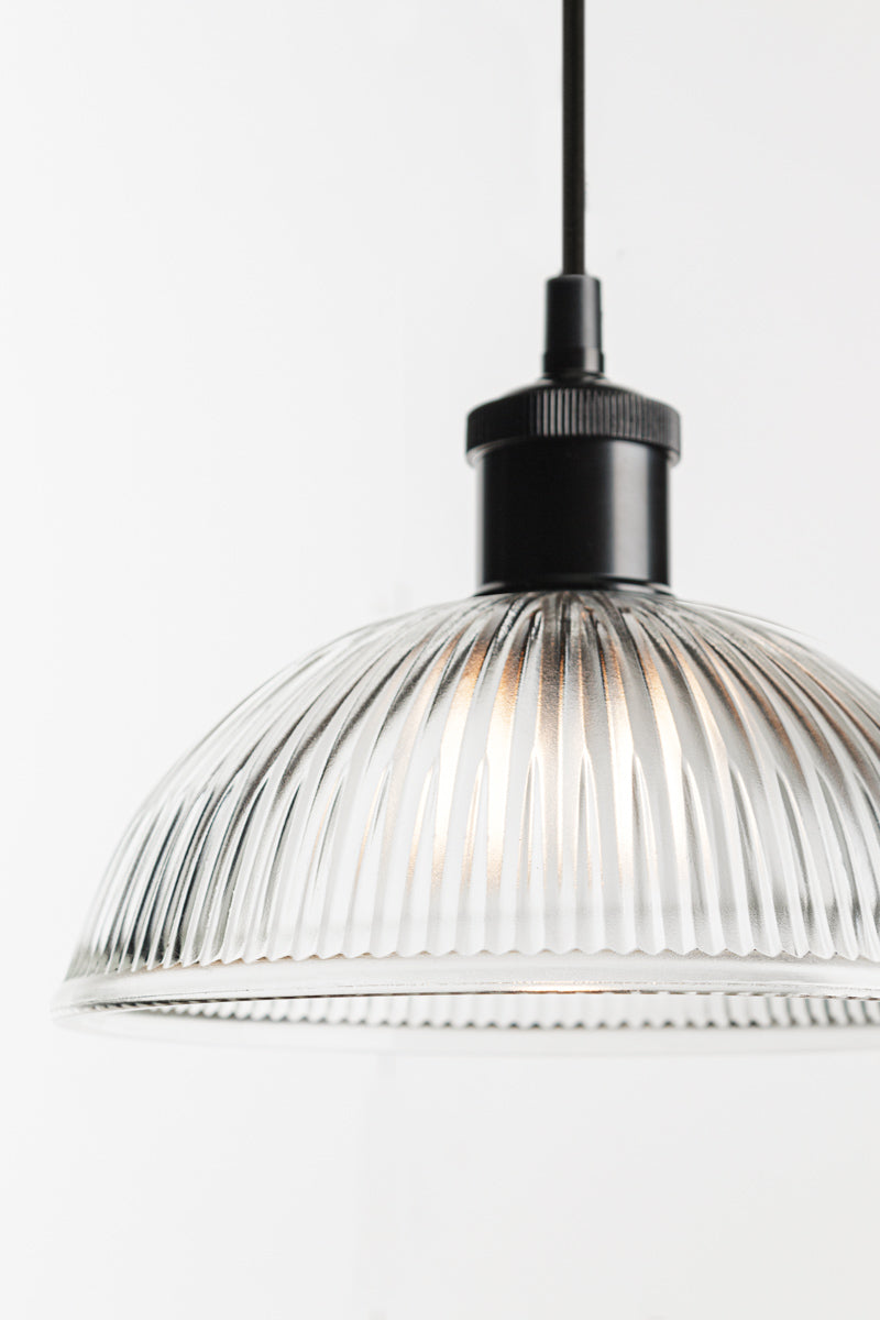The Garda Glass Pendant Light revives vintage style for the modern day. It boasts raised ridges for a textured effect and its thick heavy glass helps diffuse light to create a softer ambiance. Available in three shade sizes with a choice of three finishes for the pendant cord. Add a touch of character to any bedroom, study or commercial space.