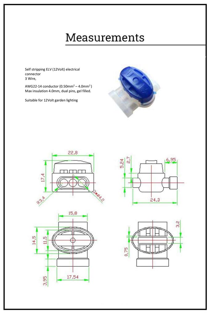 - Suitable for insulated 12Volt wires AWG22-14 (0.50mm2 – 4.0mm2).