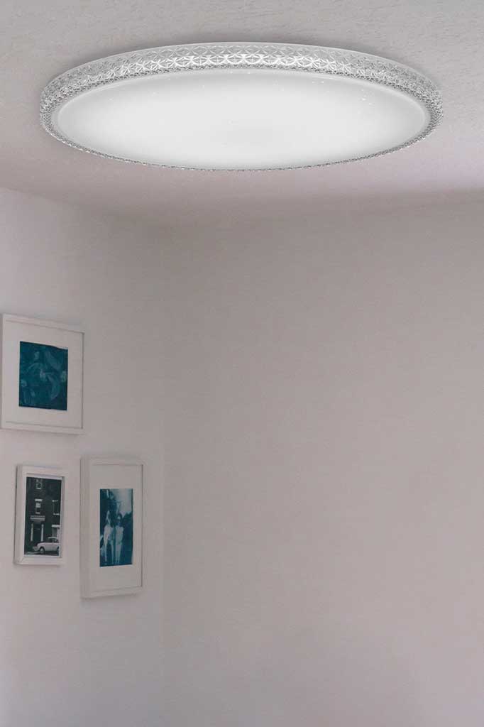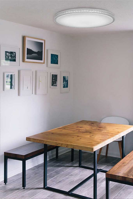 The Gaumont LED CCT Ceiling Light is a decorative and functional ceiling light that can be used in various rooms of the home such as a living room, hall, or bedroom. Its timeless design and versatile features make it a suitable option for a range of interior design styles and lighting needs. It is available in three sizes with colour temperature changing technology (CCT).