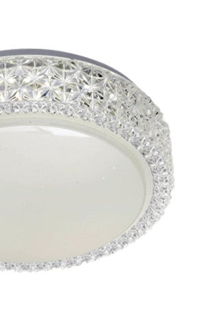 - This ceiling light features a clear crystal look decorative pattern on the lampshade. Offers an attractive decorative piece even when not in use.